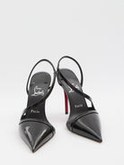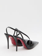BLACK PATENT CALFSKIN LEATHER DéCOLLETé. FEATURES POINTED DESIGN, WRAP-AROUND STRAP, PADDED INSOLE, STILETTO HEEL, ICONIC LOUBI RED SOLE. DUSTBAG INCLUDED. ANY LEATHER IMPERFECTIONS ARE NOT FACTORY DEFECTS BUT A CHARACTERISTIC OF THE MATERIAL.