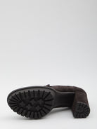 MOKA BROWN SUEDE LEATHER PUMPS. FEATURES A ROUND TOE WITH PENNY LOAFER-STYLE DETAIL AND A RUBBER PLATFORM SOLE. DUSTBAG INCLUDED.