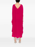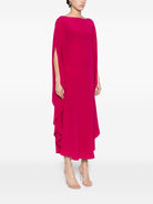 Make a bold statement in this stunning fuchsia dress from Gianluca Capannolo. Featuring dramatic ruffled sleeves that add volume and movement, this eye-catching piece is perfect for your next special occasion.