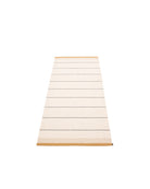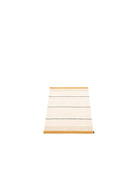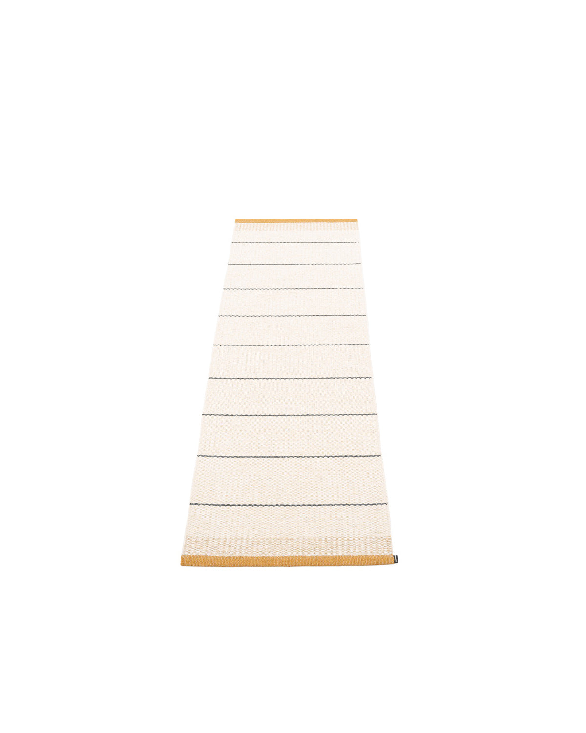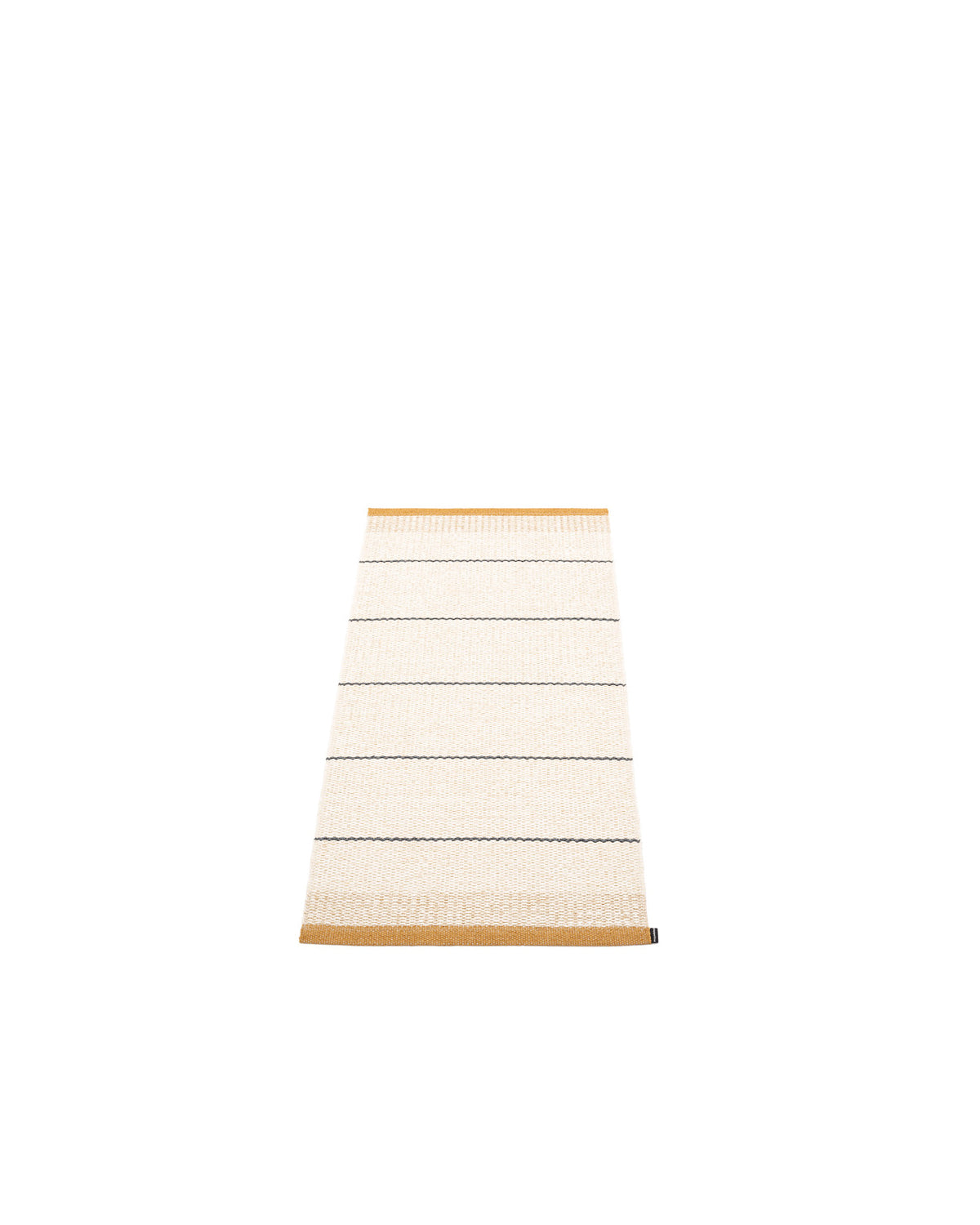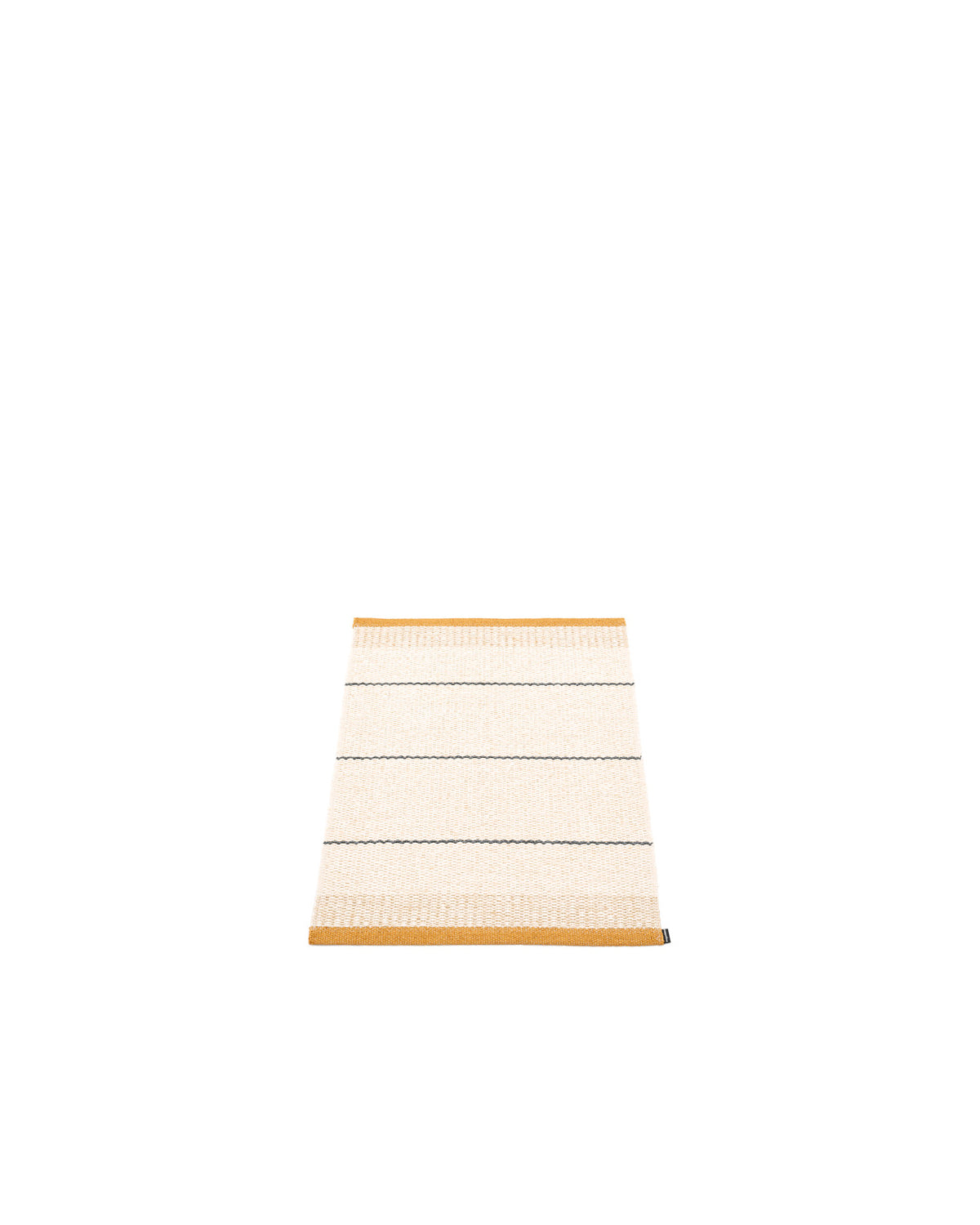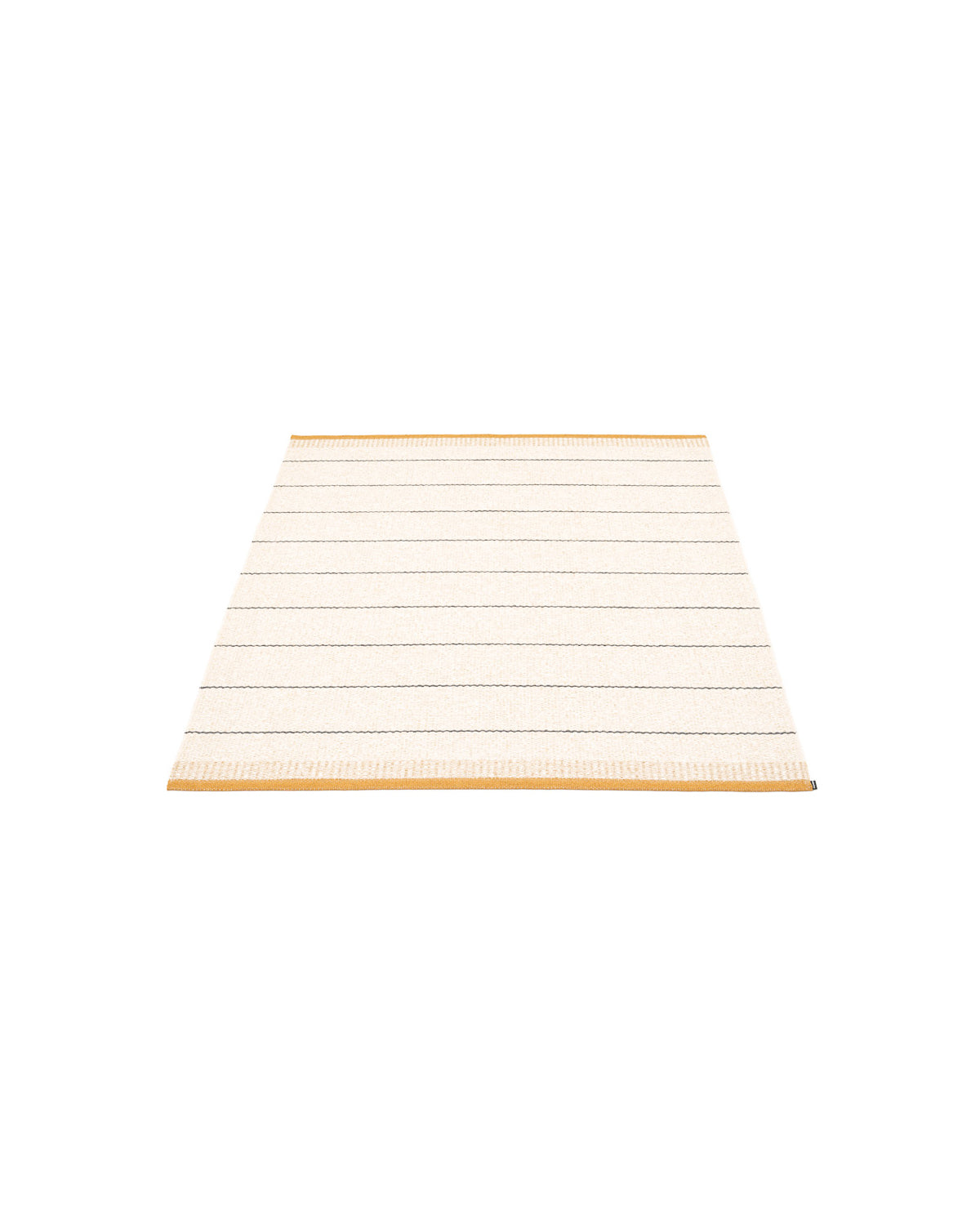 The Pappelina Rugs are woven on a traditional loom using wooden shuttles. For indoor or outdoor use, the rugs are machine-washable and made from Swedish-manufactured certified PVC. Each rug features reinforced, welded edges for strength and durability.