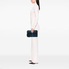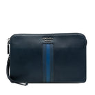Elevate your evening ensemble with this sophisticated Prada Saffiano Clutch. Crafted from the brand's signature saffiano leather in a rich navy hue, this elegant clutch features a sleek top zip closure and a convenient leather wrist strap for effortless carrying.