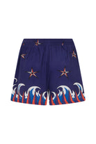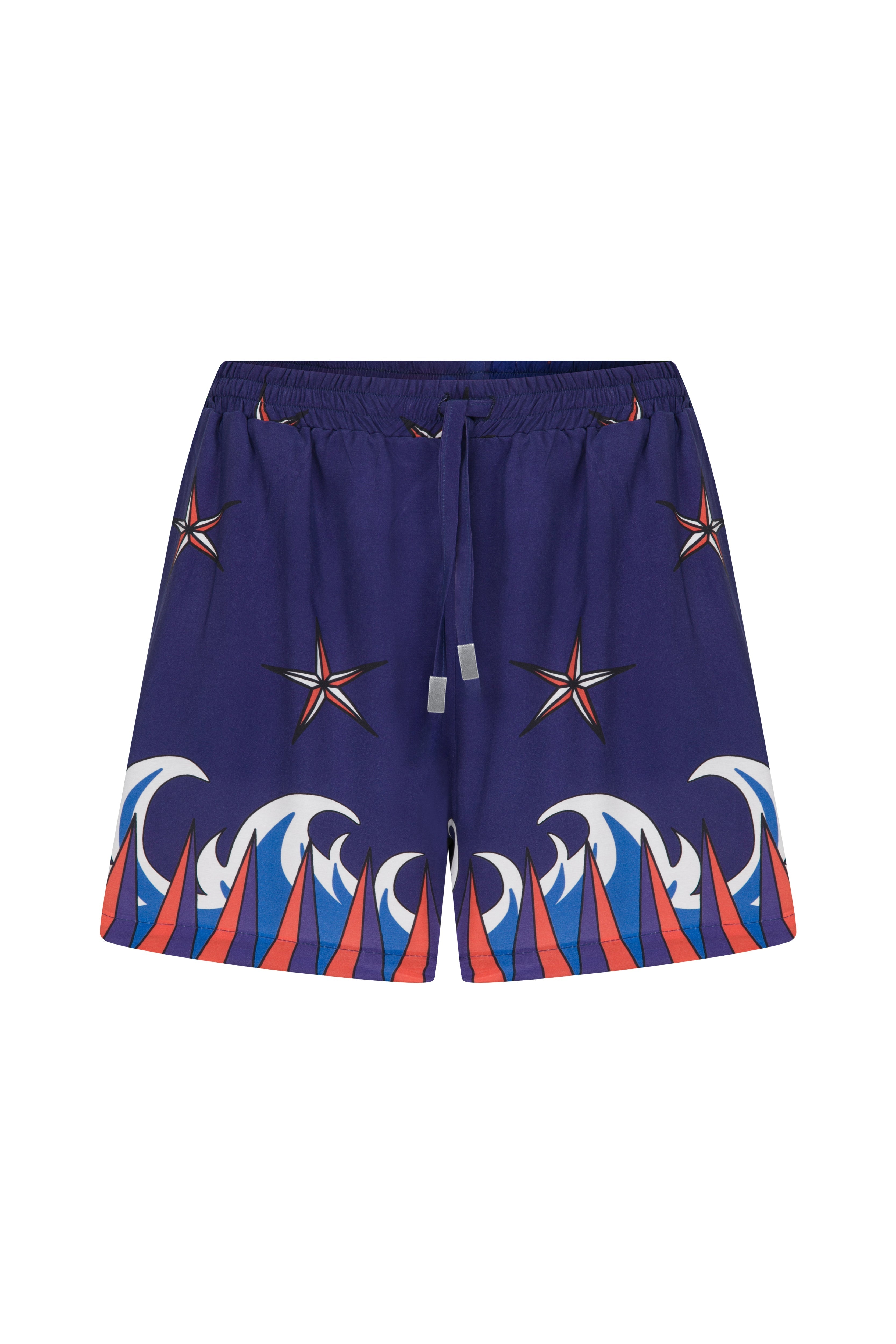 Sailor Navy Blue Shorts—comfortable, sustainable, and stylish. With an elasticated drawstring waistband and two side pockets, they're perfect for everyday wear. Made from recycled materials and sporting a vibrant blue color, they're eco-friendly too.