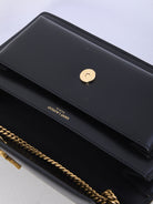 SAINT LAURENT LOULOU LARGE BAG IN BLACK LAMBSKIN, BRONZE-COLORED METAL PARTS.