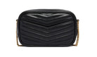 SAINT LAURENT MINI LOU BAG IN CALFSKIN, QUILTED DESIGN, SIGNATURE YSL LOGO PLAQUE, TOP ZIP CLOSURE, SHOULDER STRAP AND CHAIN, GOLD-TONE DETAILS.