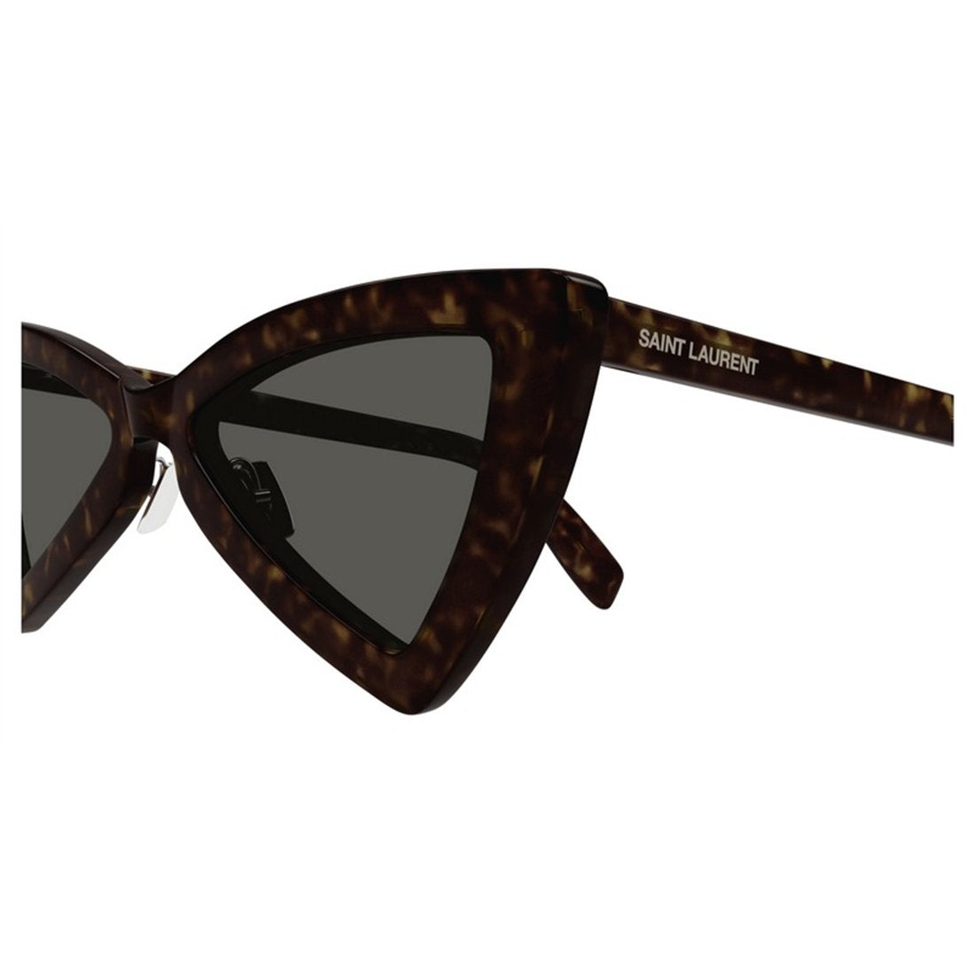 Saint Laurent SL 207 JERRY sunglasses bring bold, retro-inspired glamour to your eyewear collection. These striking cat-eye frames feature a rich havana tortoiseshell pattern paired with sophisticated grey lenses, creating a timeless yet contemporary aesthetic.