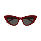 Make a bold statement with the Saint Laurent SL 213 LILY sunglasses in striking red. These iconic cat-eye frames feature a dramatic silhouette that channels vintage glamour with a modern edge.