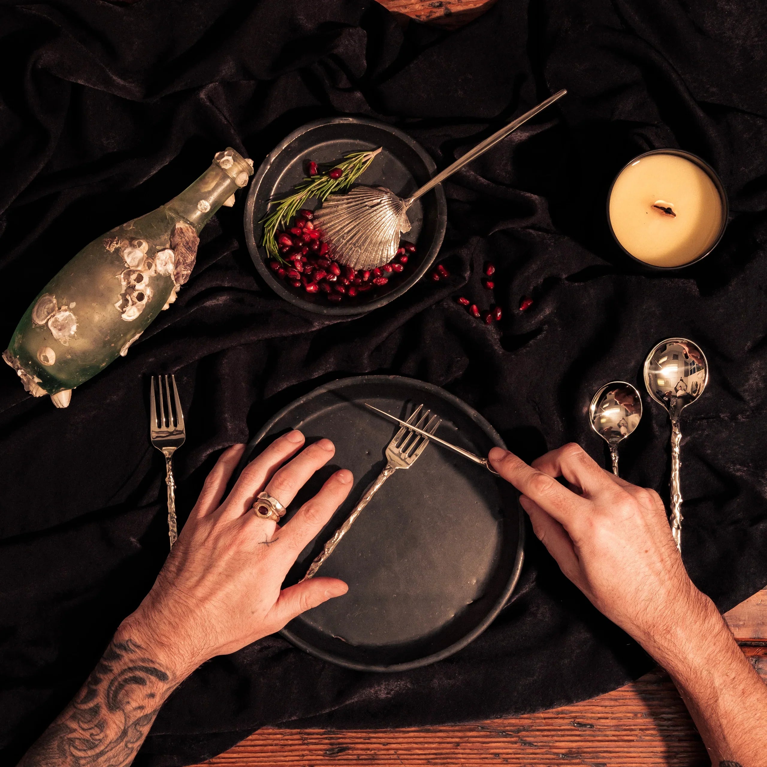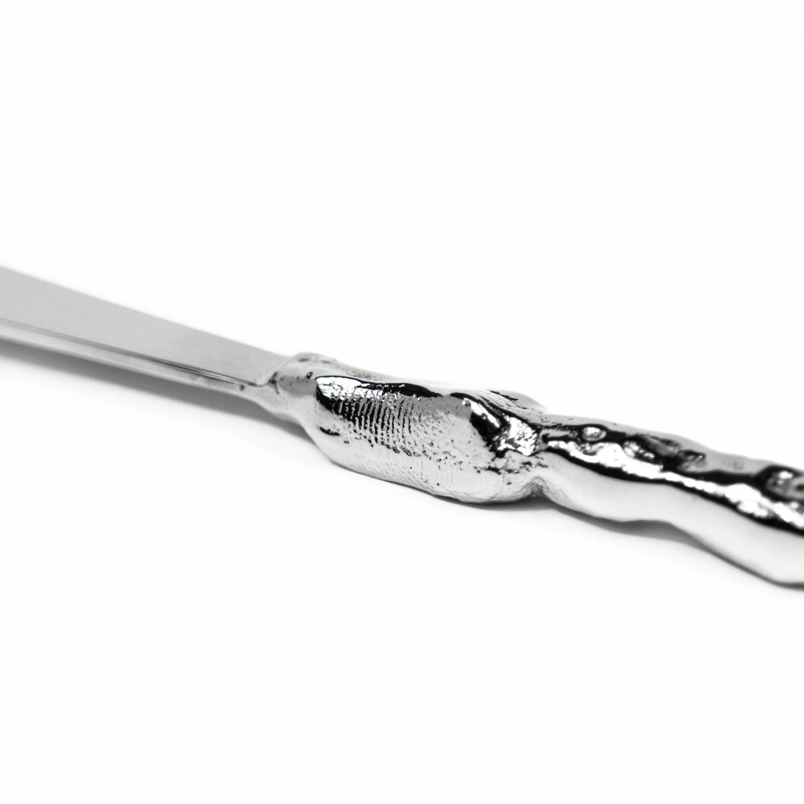 Hand carved & cast in stainless steel with forged elements.