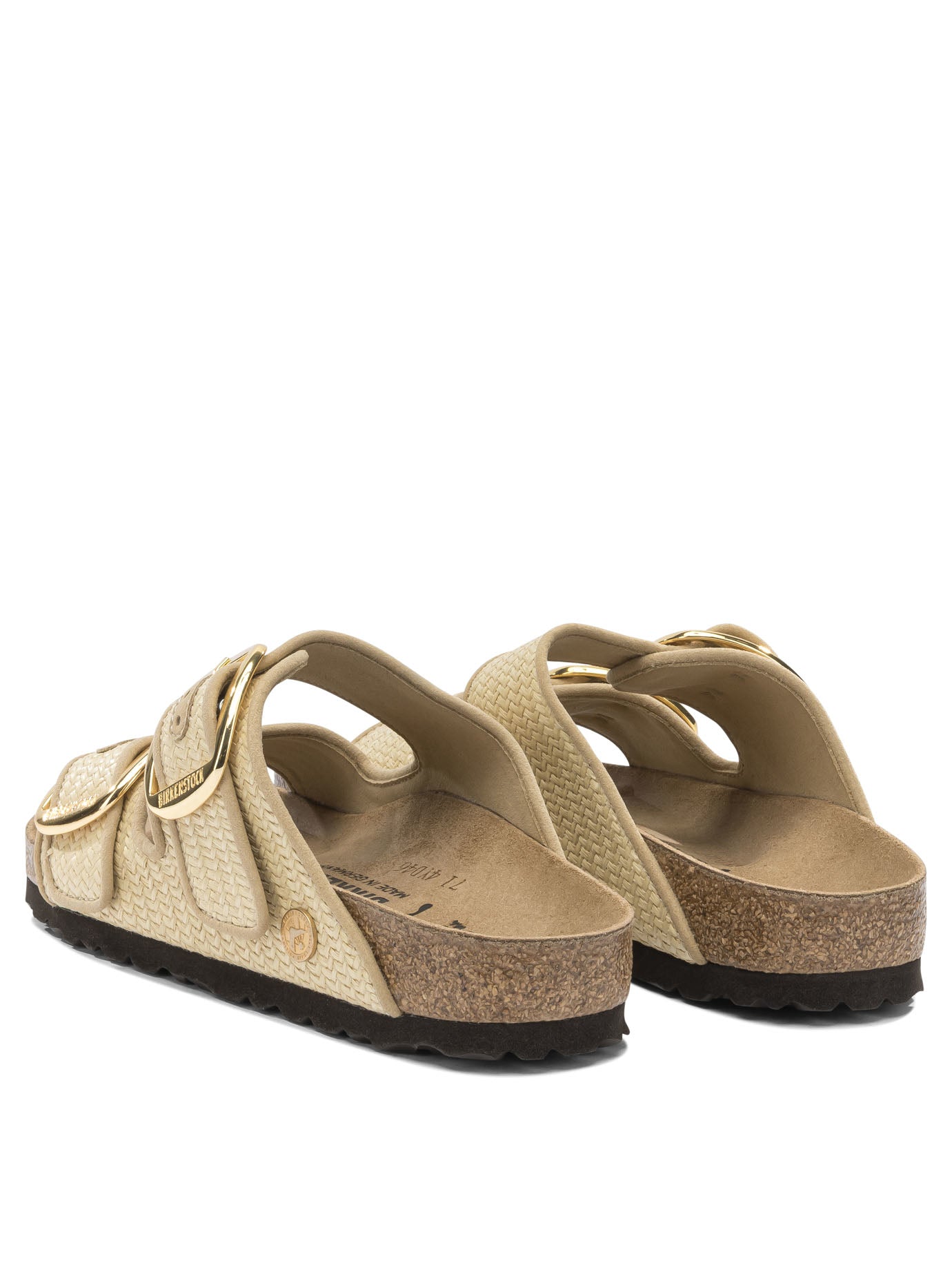 Step into effortless comfort with these iconic Birkenstock slide sandals in a luxurious gold-beige finish. Featuring the brand's signature contoured cork footbed and two adjustable buckle straps, these sandals provide all-day support and a customized fit.