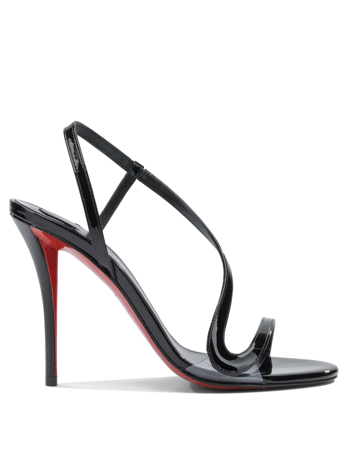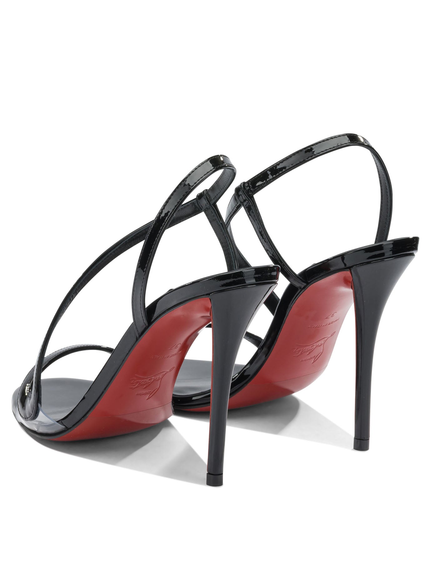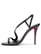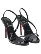 Elevate your evening wardrobe with these stunning Christian Louboutin heeled sandals. Crafted in sleek black patent leather, these sophisticated sandals feature delicate strappy detailing and a secure ankle strap for both style and comfort.