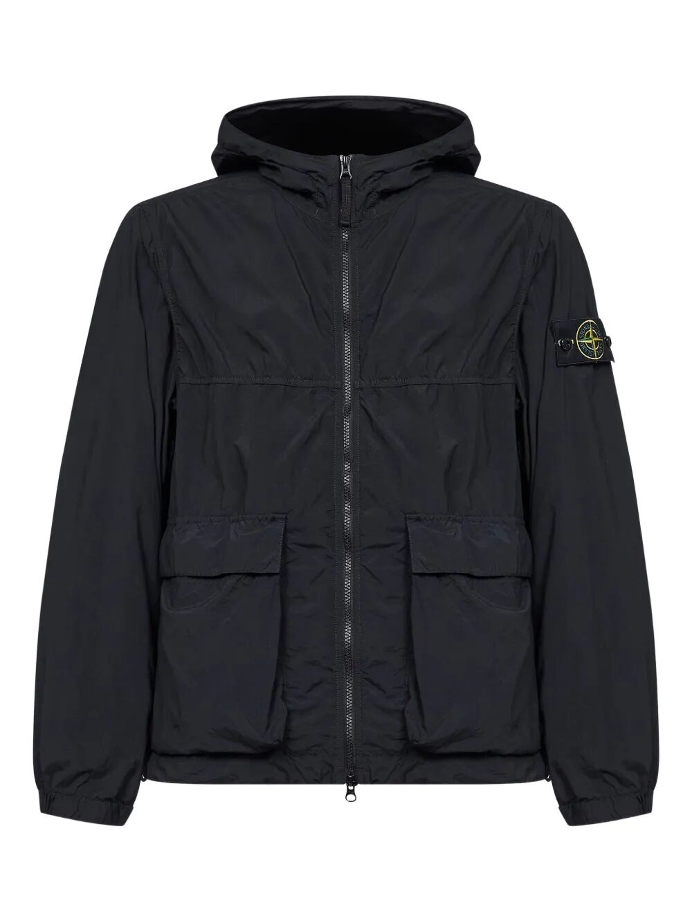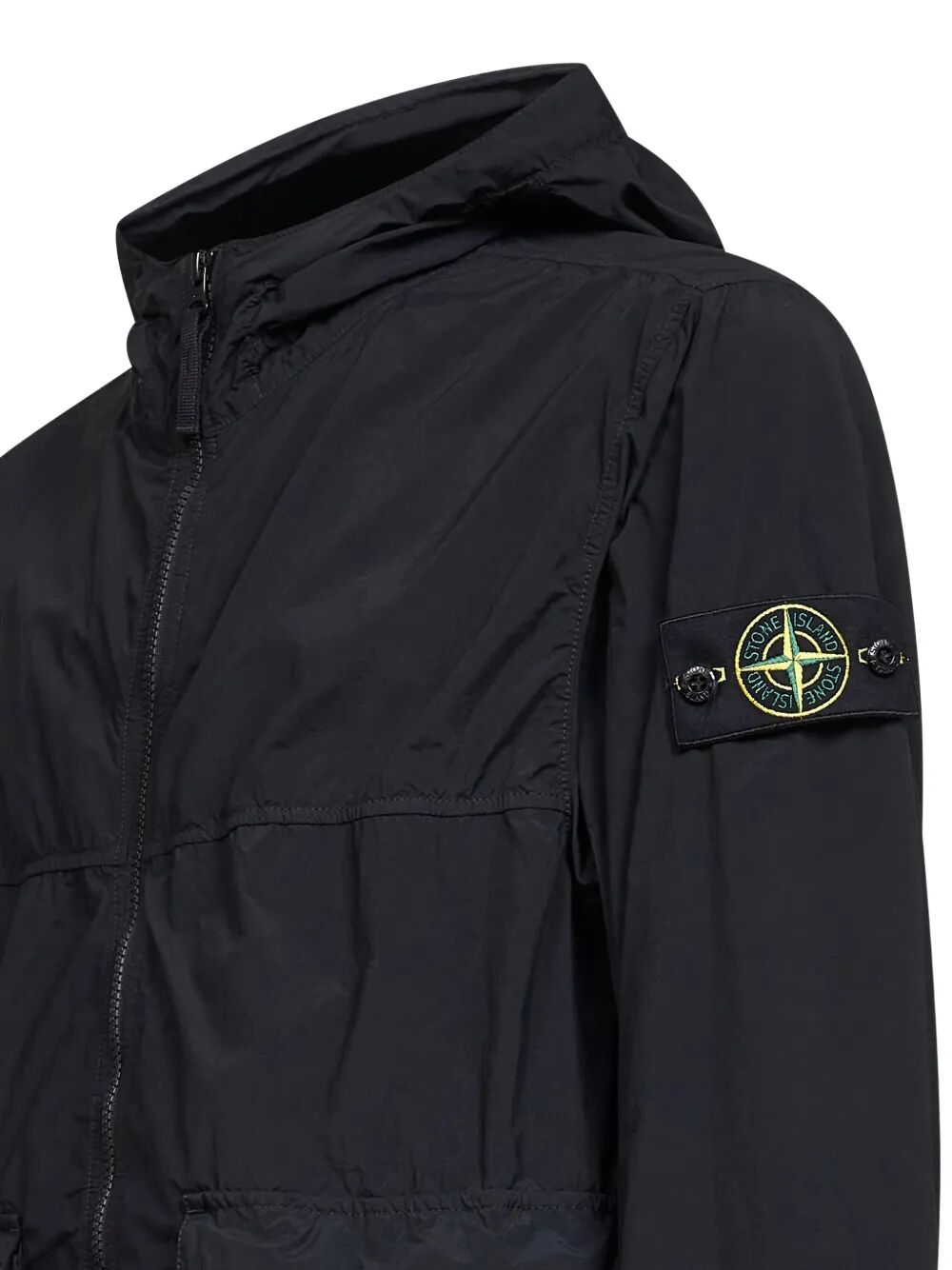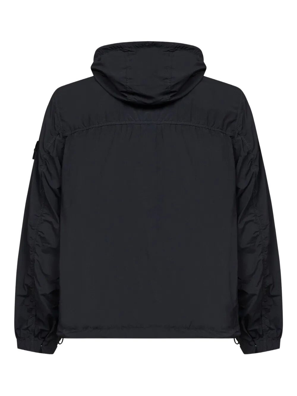 BLACK NYLON JACKET. IT FEATURES AN ADJUSTABLE HOOD WITH AN INTERNAL DRAWCORD, A ZIP FRONT CLOSURE, TWO FLAP BUTTON POCKETS ON THE FRONT, LONG SLEEVES, AN ICONIC BADGE ON THE SLEEVE, AND ELASTICATED CUFFS AND HEM. REGULAR FIT.