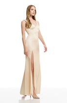 Seductively designed, the Sandra Dress boasts a deep V-neckline and a figure-hugging silhouette, exuding a sense of effortless allure.