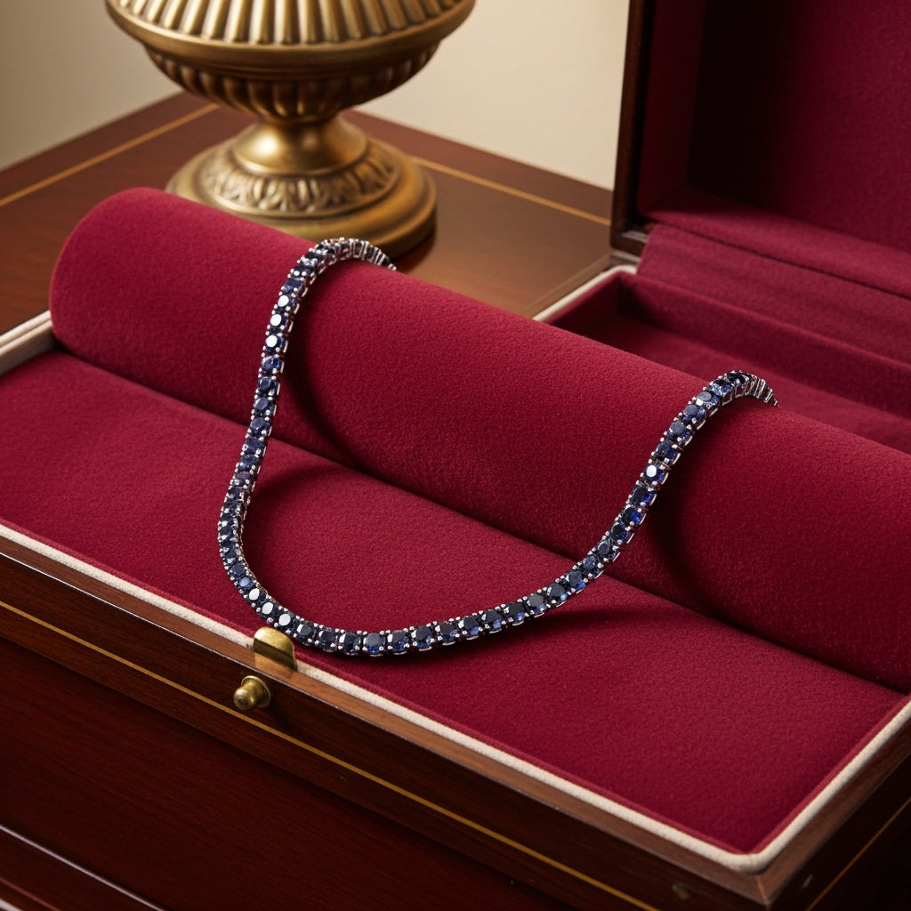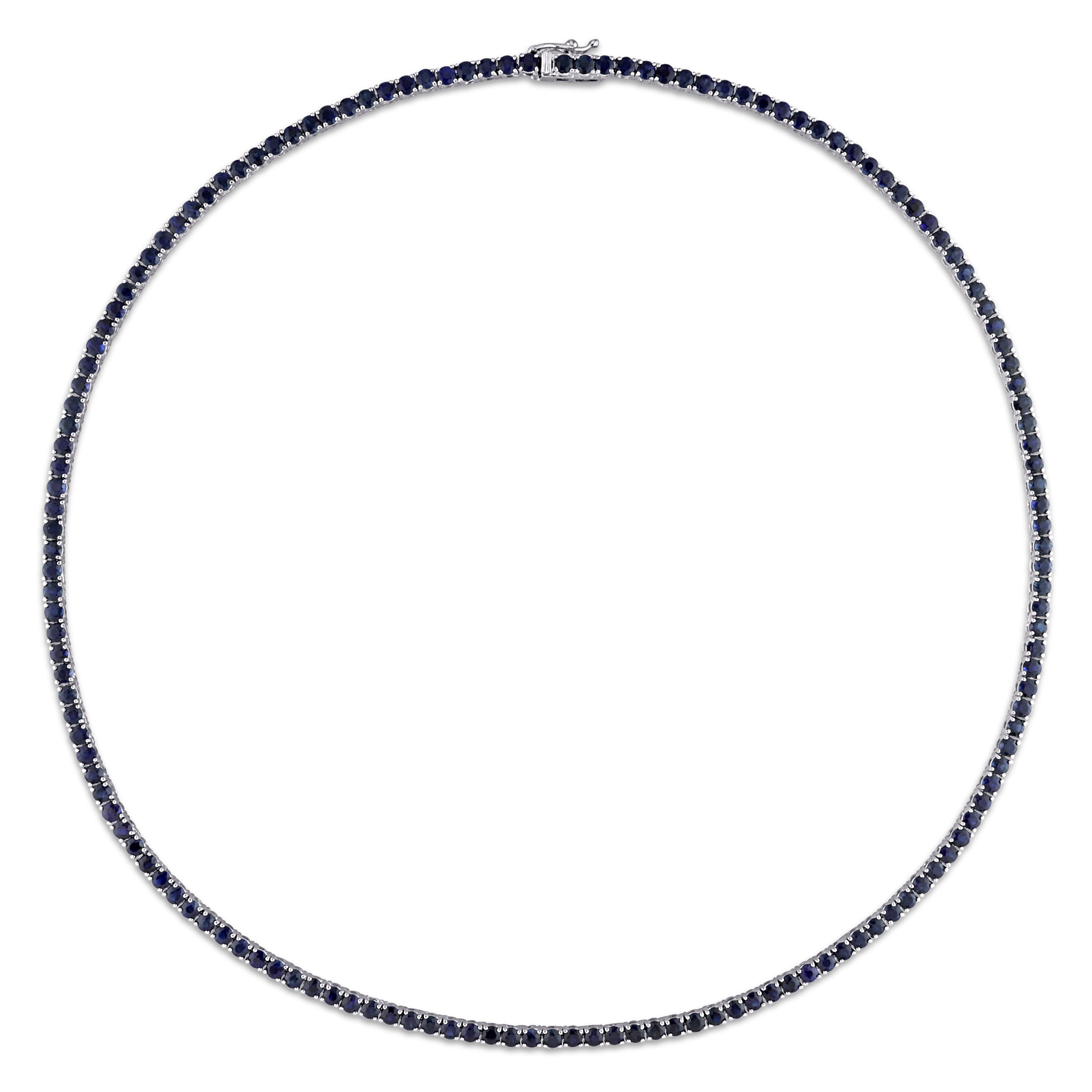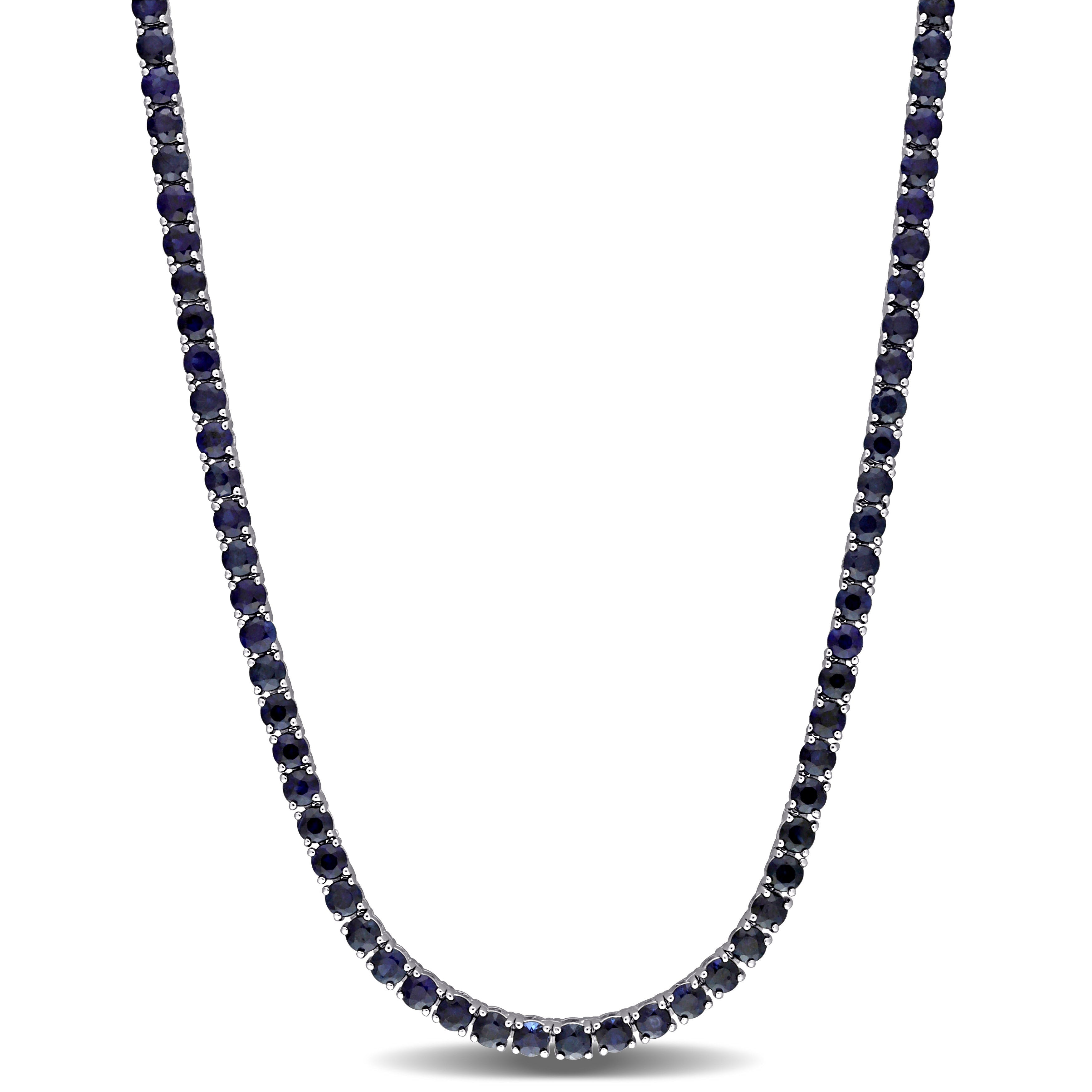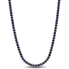 This opulent tennis necklace is crafted in glistening 14k gold. This flawless necklace features prong-set sapphire gemstones. This exquisite necklace measures 16.5-inches in length and is comfortably secured with a safety clasp. Enhanced with a high polished finish, this classic necklace is sure to give you a queenly look.