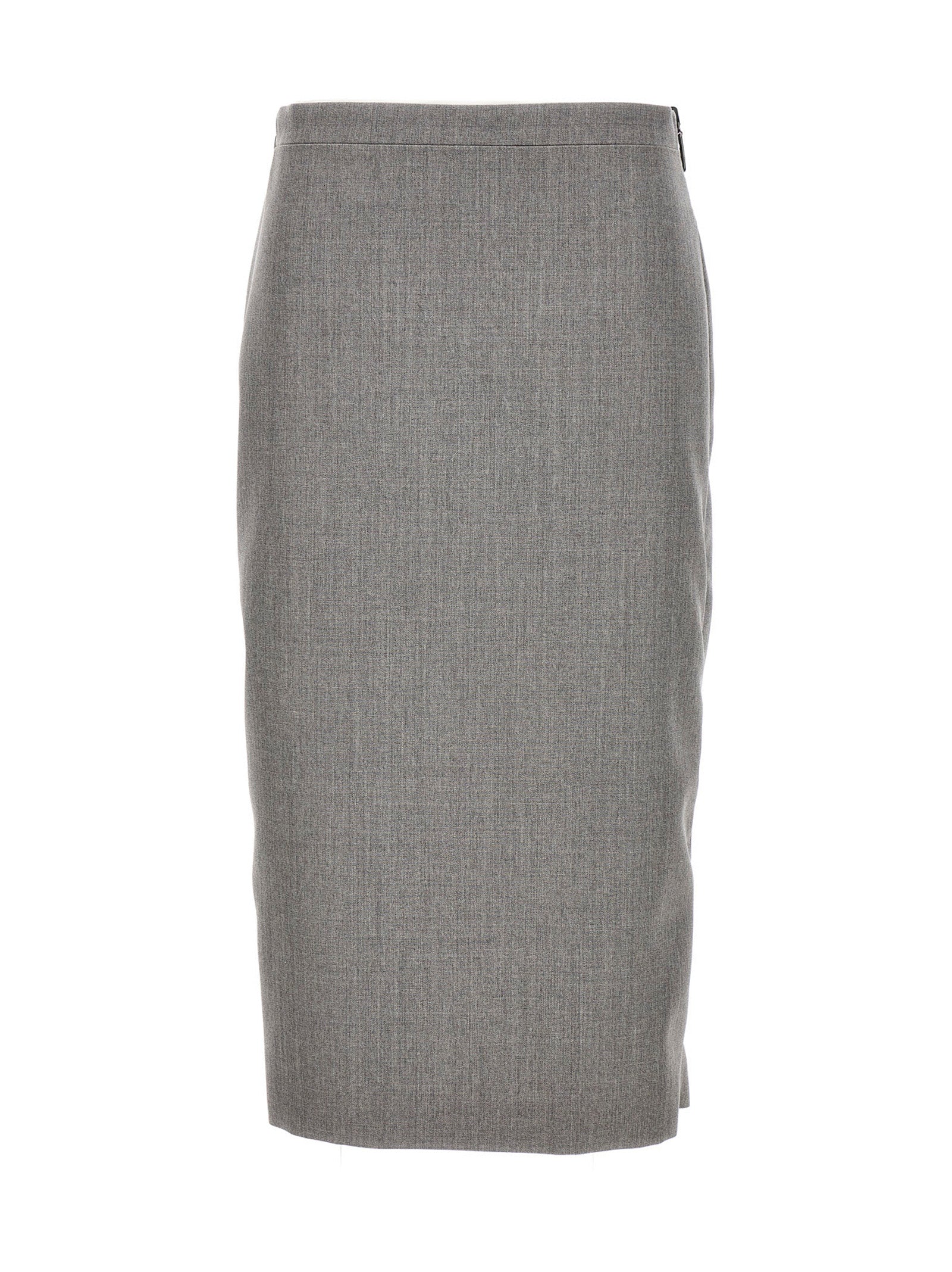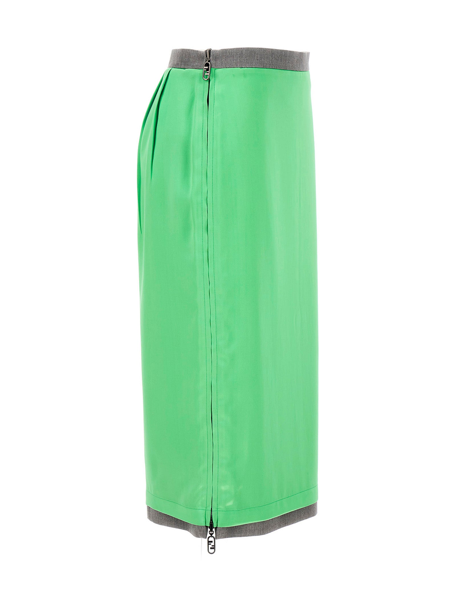 Double fabric satin and wool gabardine skirt with midi style, side zip detail and a logo puller.