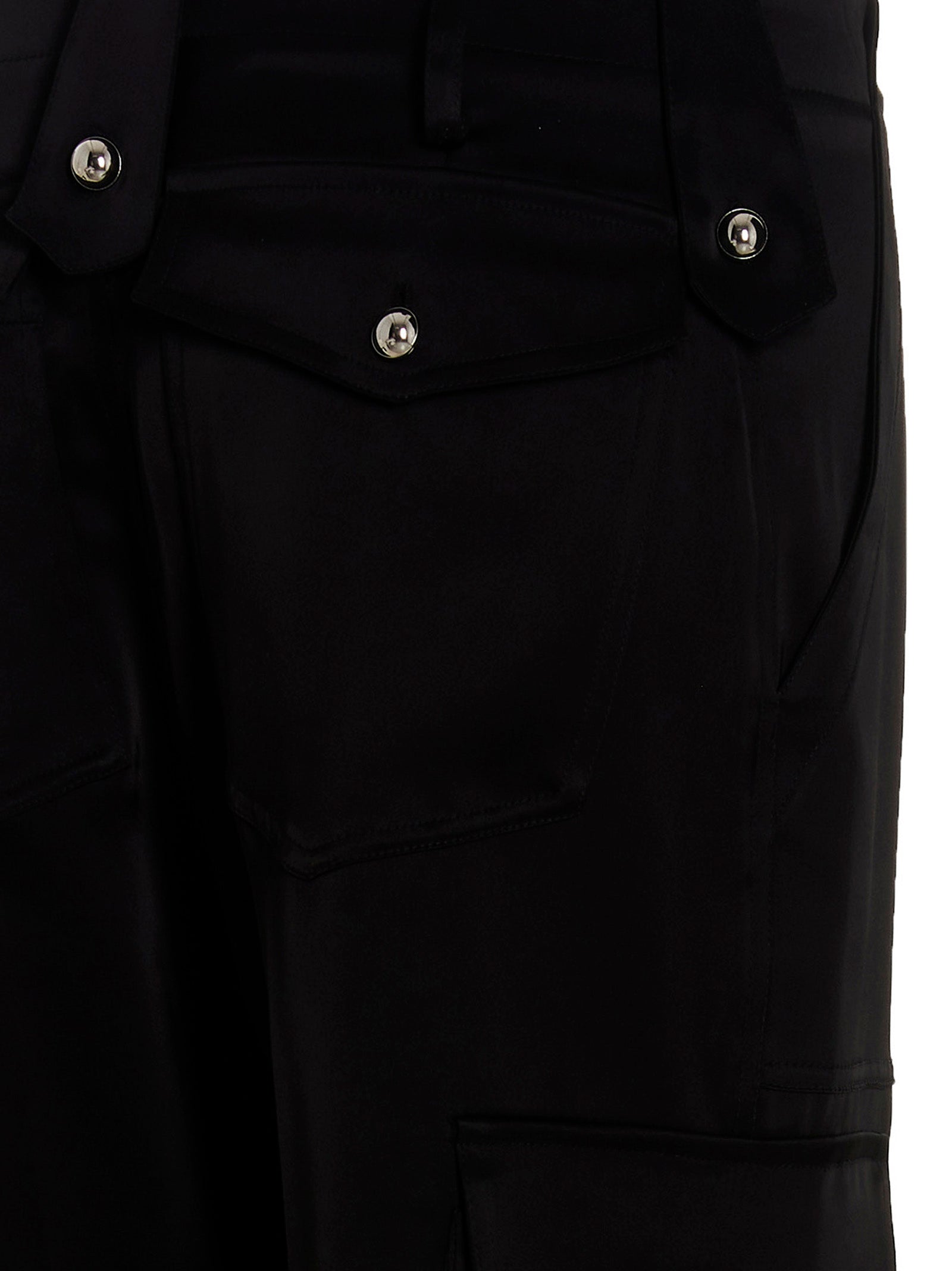 Whether you're heading out for a night on the town or creating an effortlessly chic off-duty look, these David Koma satin cargo pants are the ultimate statement piece for the modern fashion-forward wardrobe.