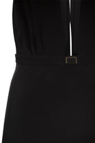 SATIN CREPE MIDI DRESS WITH ASYMMETRIC FLARED BOTTOM SKIRT. IT FEATURES AN AMERICAN NECKLINE WITH A DEEP DROP OPENING AT THE NECKLINE AND A SCARF AT THE NECK. - INVISIBLE ZIP AT THE HIP - HOOK-AND-EYE CLOSURE AT NECKLINE - MATCHING LOGO ACCESSORY DESIGNER ID: AB58042E2 110