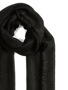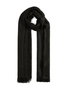 Crafted from an exquisite blend of 45% cashmere, 36% polyamide, and 19% silk, this scarf offers an incredibly soft hand feel and sophisticated drape that epitomizes luxury. The rich black hue and delicate fringe detailing make it a versatile piece that effortlessly transitions from day to evening.