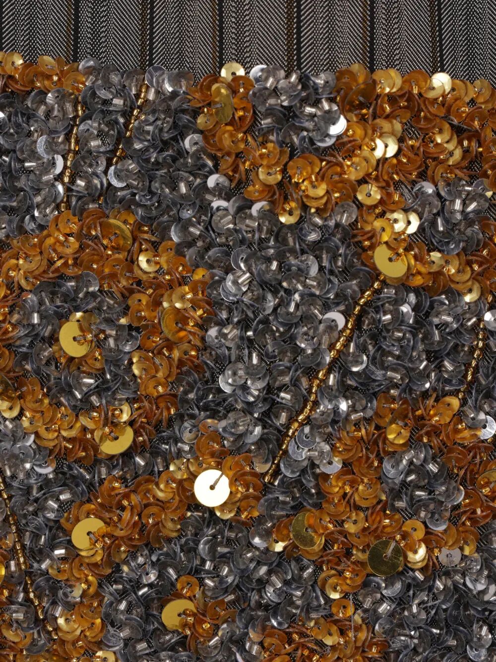The standout detail is the stunning sequined hem in gold and silver tones, adding a touch of glamour and sparkle to this refined design. Crafted from 100% viscose for a luxurious drape and comfortable wear.