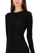 Embrace effortless sophistication with the Paco Rabanne Secondskin Effect Long Dress. This stunning maxi dress features a sleek, body-hugging silhouette crafted from luxurious 100% wool, adorned with subtle studded detailing that catches the light beautifully.