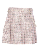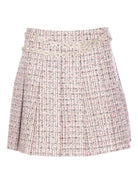 ELEGANT AND FEMININE, THIS PINK BOUCLÉ MINI SKIRT BY SELF-PORTRAIT CAPTURES A MODERN PREPPY CHARM. FEATURING STRUCTURED PLEATS AND A SPARKLING CRYSTAL CHAIN BELT, IT ADDS LIGHT AND MOVEMENT TO ANY LOOK. PAIR IT WITH THE MATCHING BLAZER FOR A CHIC AND REFINED ENSEMBLE.