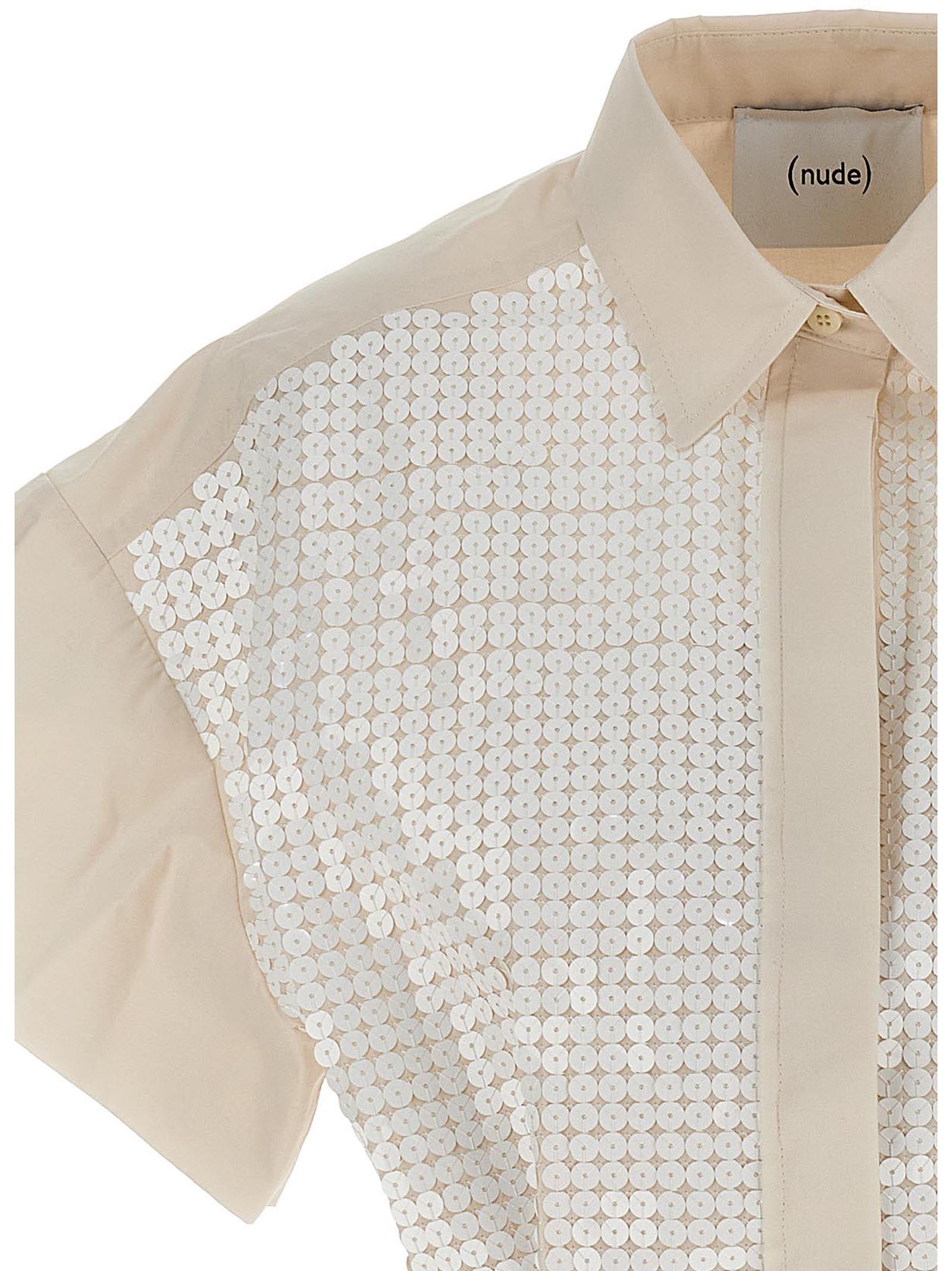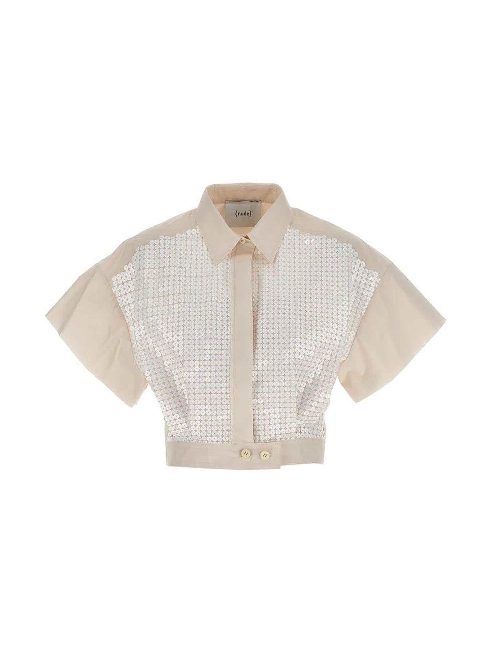 Elevate your everyday style with this stunning sequin cropped shirt from NUDE. Crafted from premium cotton, this chic piece features eye-catching sequin appliqué across the front that adds a touch of glamour to any outfit.