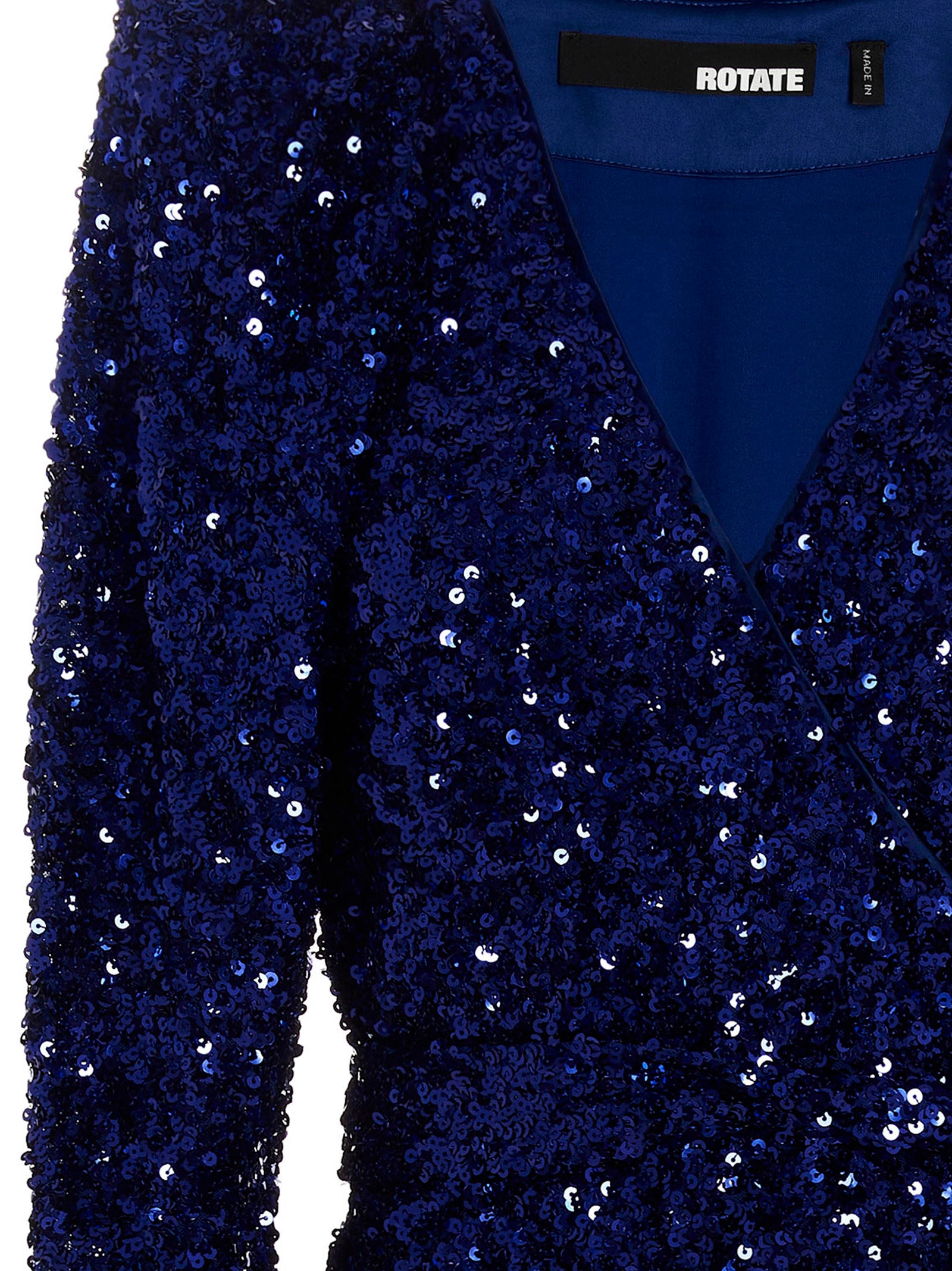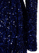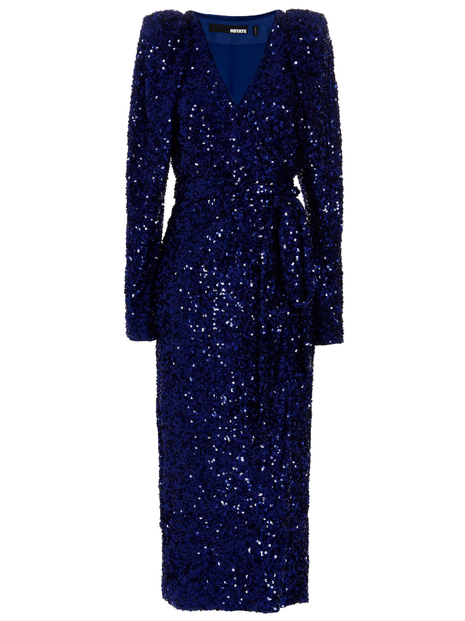 Maxi dress with all-over sequin appliqué, wrap tie closure, long sleeves and shoulder pads. Sequins sewn one by one. Any imperfections should not be considered defects.