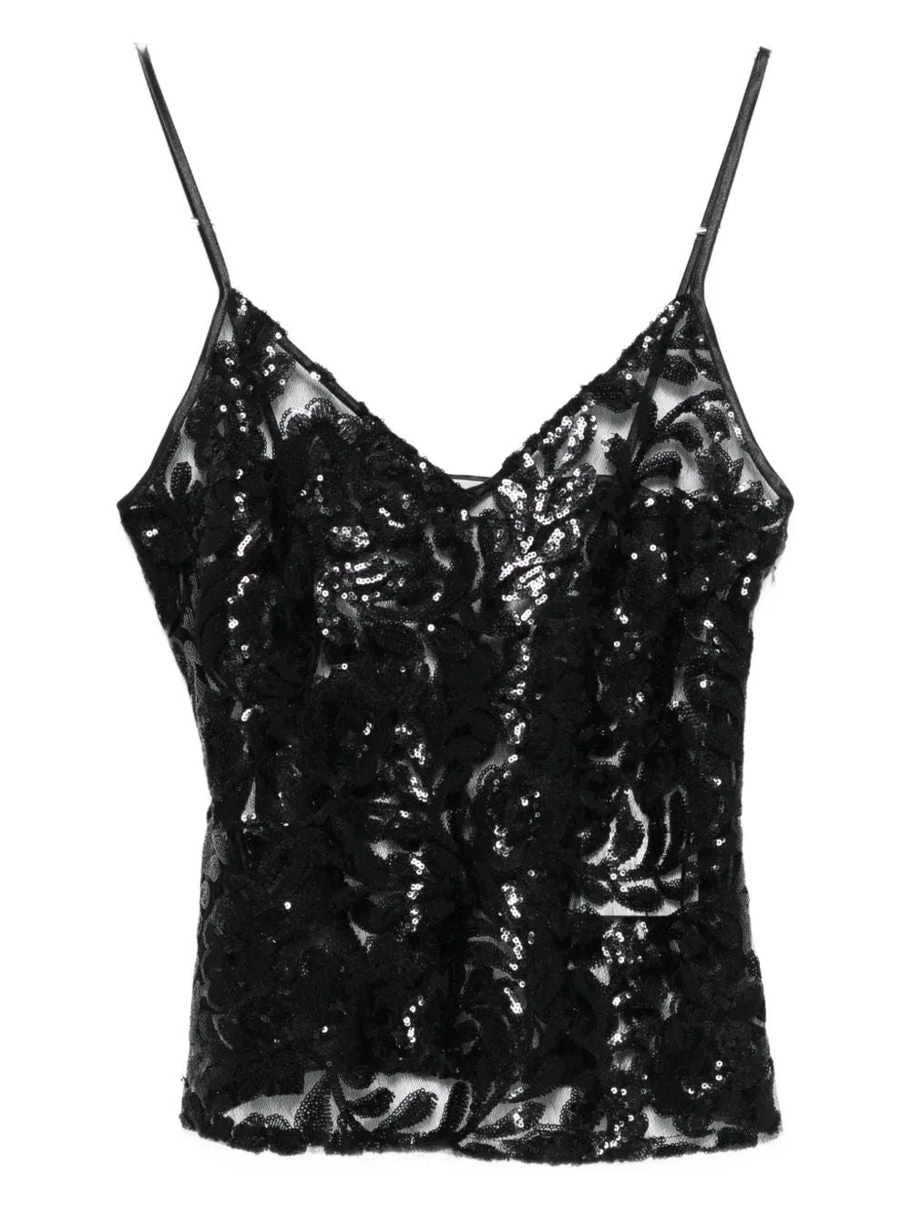Make a dazzling statement with this Sequin V-Neck Top from Golden Goose. This luxurious camisole features all-over sequin embellishment that catches the light beautifully, while delicate spaghetti straps and a flattering V-neckline create an effortlessly elegant silhouette.
