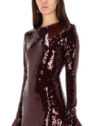 Make a dazzling entrance in this stunning sequined mini dress from ROTATE BIRGERCHRISTENSEN. This show-stopping piece features allover sequin embellishments that catch the light beautifully, creating an unforgettable sparkle with every move.