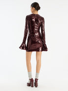 SEQUINS MINI DRESS FLARED CUFFS BACK ZIP CLOSURE 95% RECYCLED POLYESTER, 5% ELASTANE MADE IN CHINA