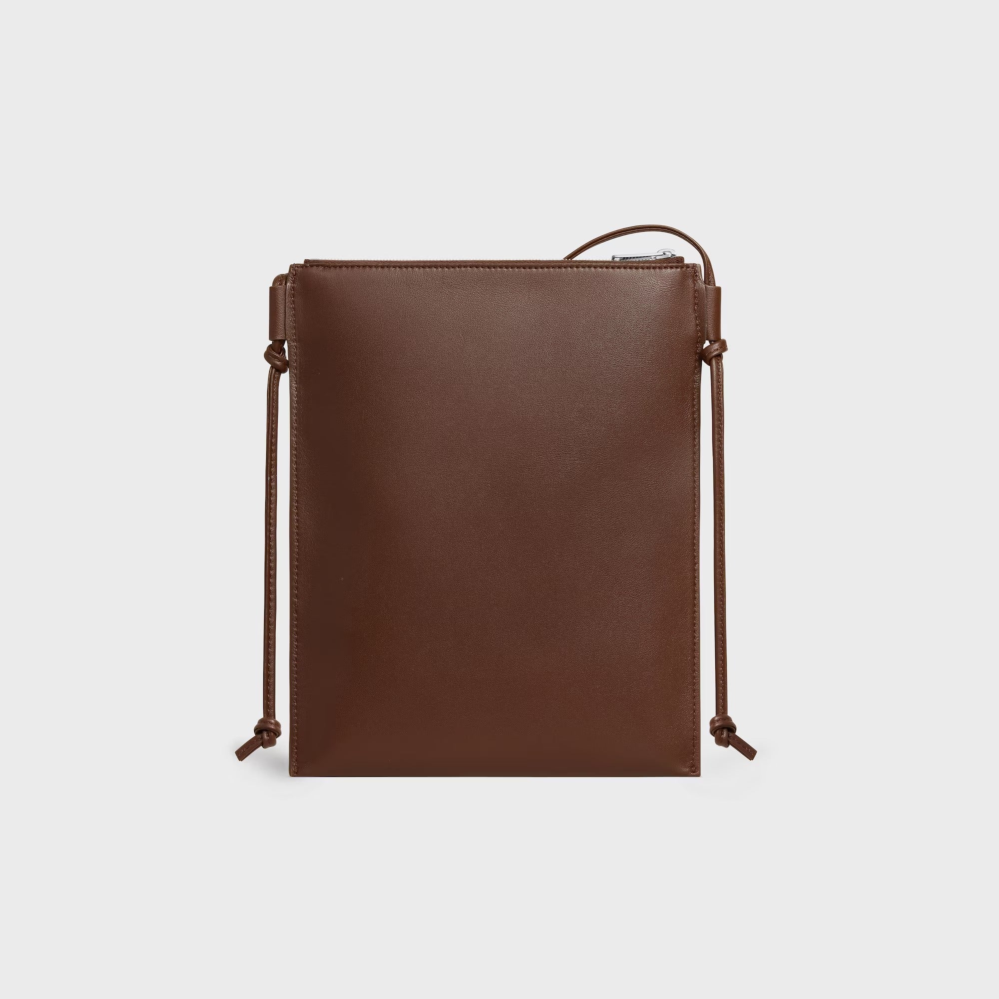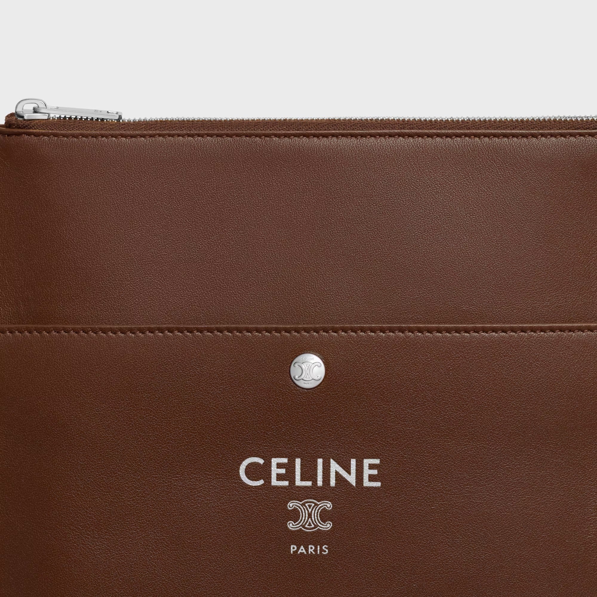 Introducing the "Sharp" small pouch in leather by Celine, a sophisticated accessory that combines minimalist design with exceptional craftsmanship. This compact leather pouch features a sleek square silhouette with a convenient front pocket and adjustable shoulder strap, making it perfect for hands-free styling.