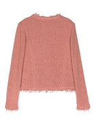 BLUSH PINK COTTON KNITTED CONSTRUCTION FRINGED EDGE ROUND NECK OPEN FRONT LONG SLEEVES TWO SIDE WELT POCKETS UNLINED STRAIGHT HEM