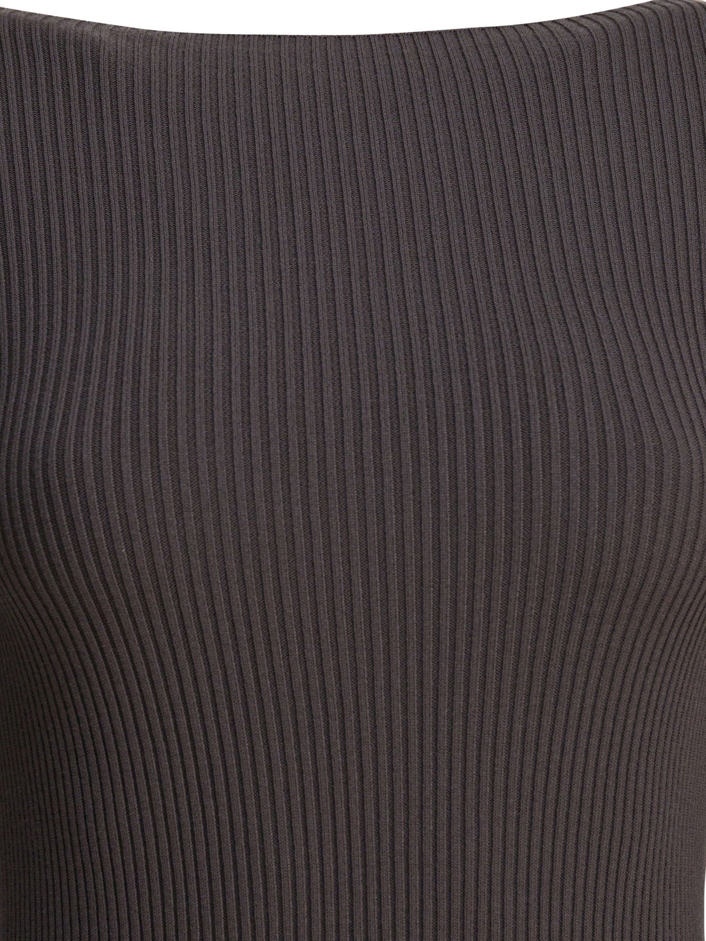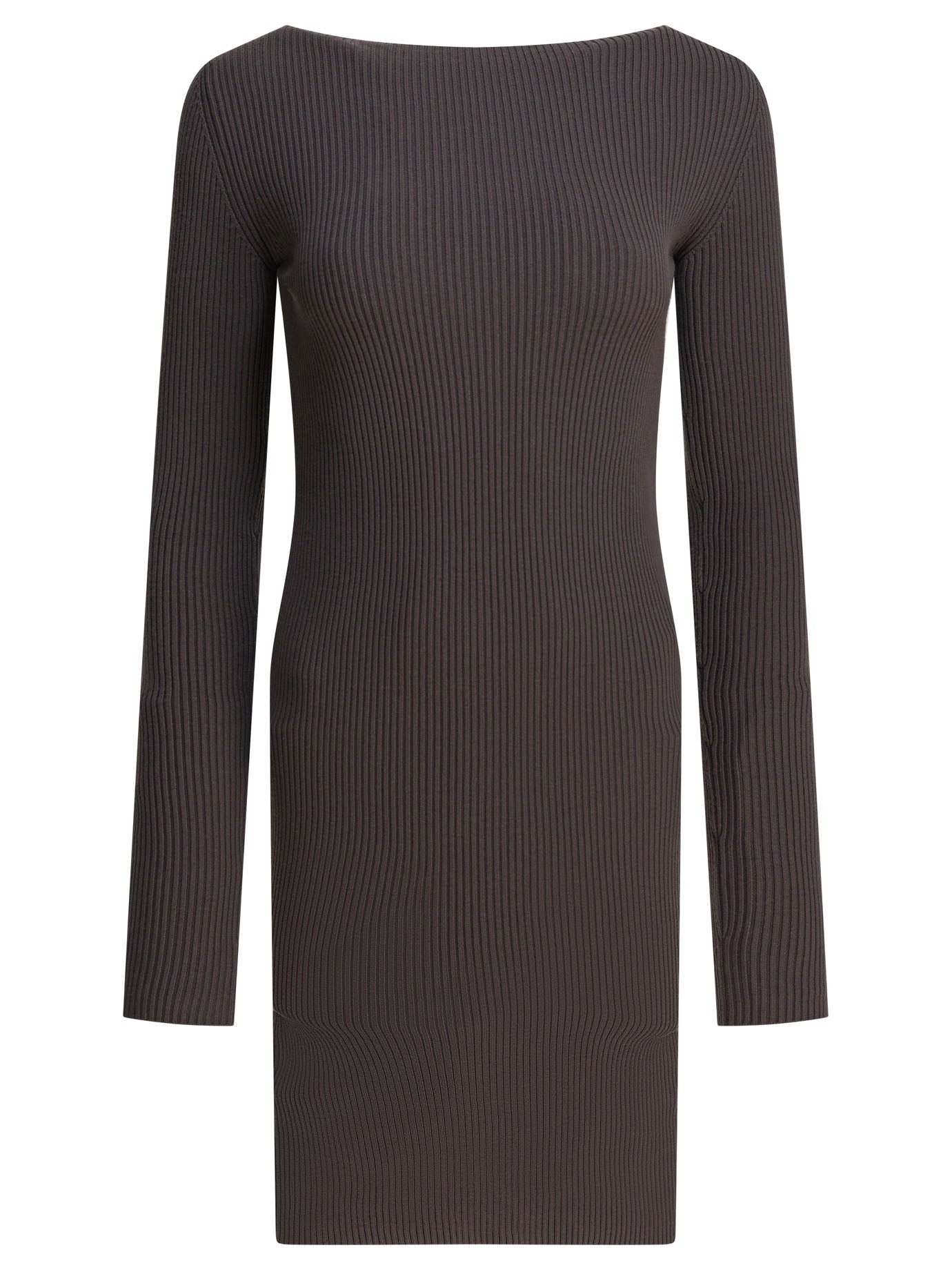 This sheath dress by Rick Owens perfectly embodies the brand's gothic and sophisticated aesthetic. Crafted from a refined viscose blend, it features sleek lines and a structure that fits the silhouette perfectly, giving it a timelessly classy feel. The long sleeves and boat neck add a touch of minimal sophistication, making it ideal for occasions when you want to stand out with discretion and style.