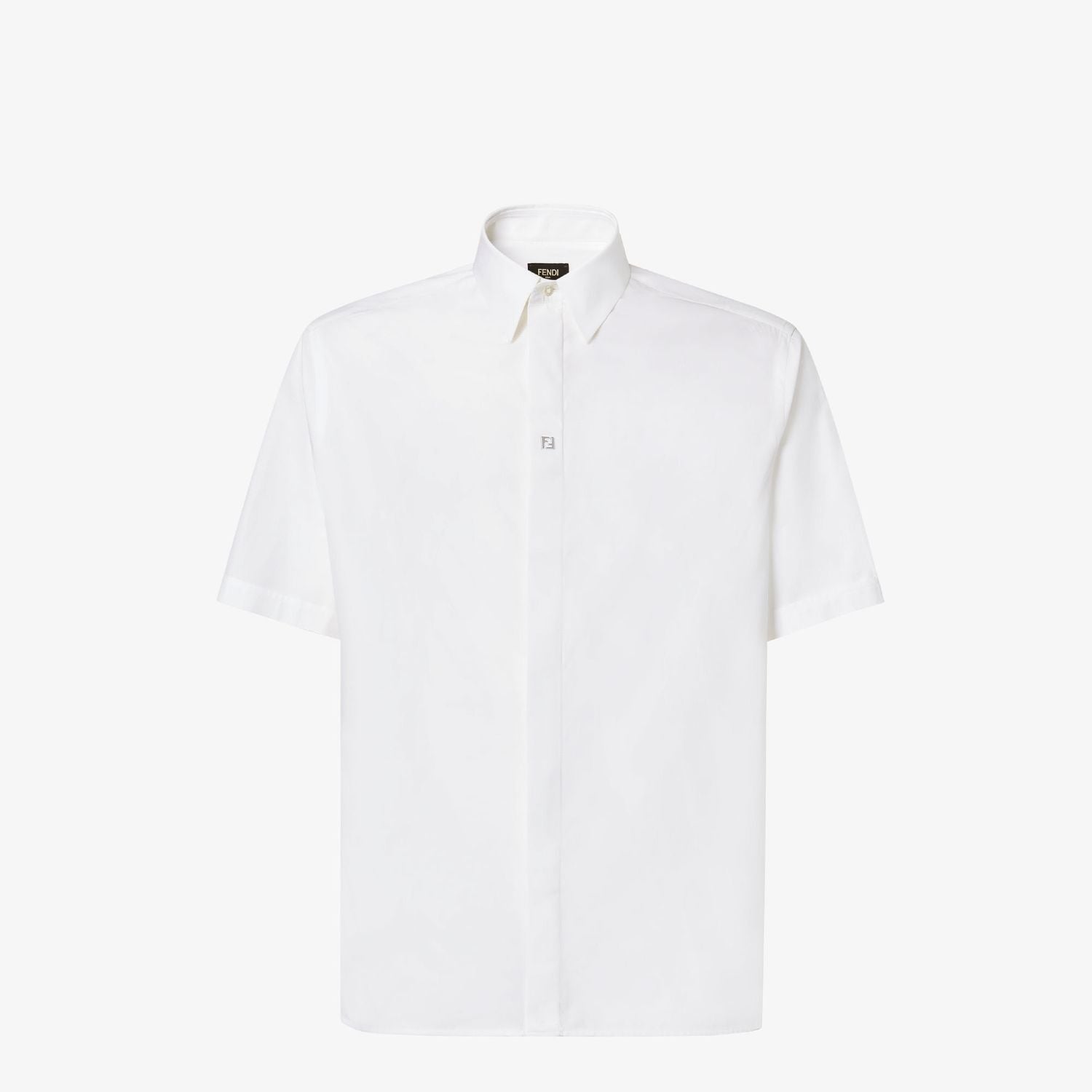 Elevate your wardrobe with this classic white button-up shirt from Fendi. Crafted with impeccable attention to detail, this short-sleeved shirt features a timeless collar design and a clean, sophisticated silhouette.