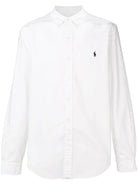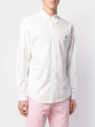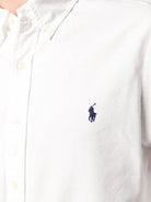 Elevate your wardrobe essentials with this classic white button-down shirt from Polo Ralph Lauren. Featuring the iconic embroidered polo player logo, this timeless piece embodies sophisticated simplicity and versatile style.