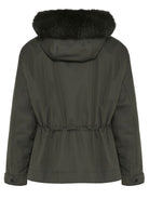 The rich olive tone and plush fur details make this piece a sophisticated statement for the modern woman who values both comfort and luxury.