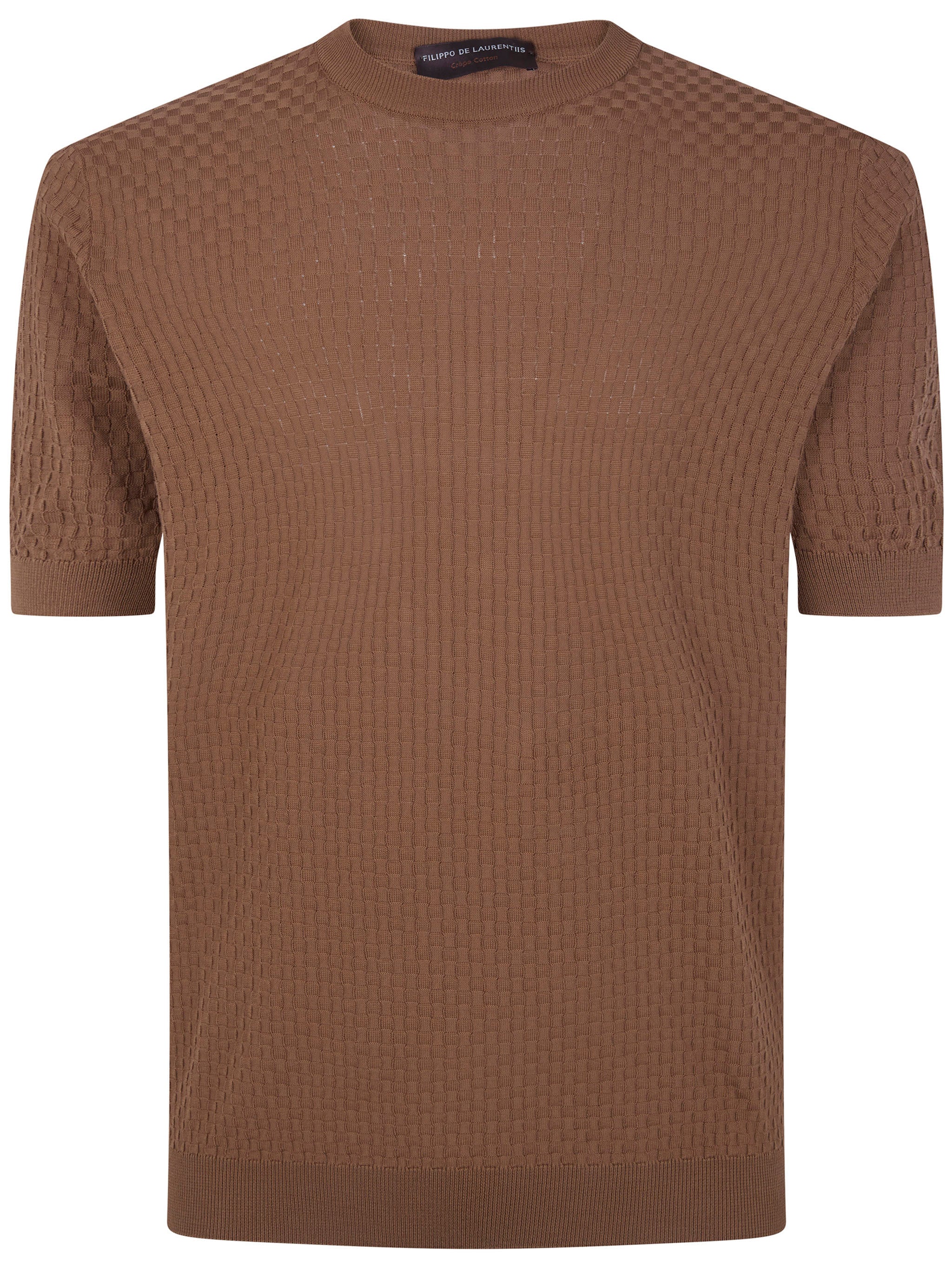 Elevate your warm-weather wardrobe with this sophisticated short sleeve round neck sweater from FILIPPO DE LAURENTIIS. Crafted from 100% premium cotton, this knitted piece features a textured waffle-knit pattern that adds visual interest and breathability to your ensemble.