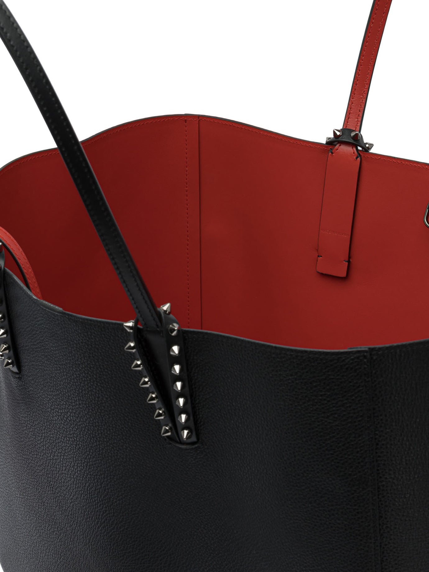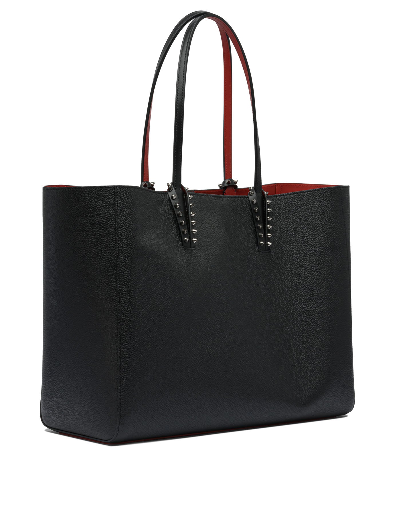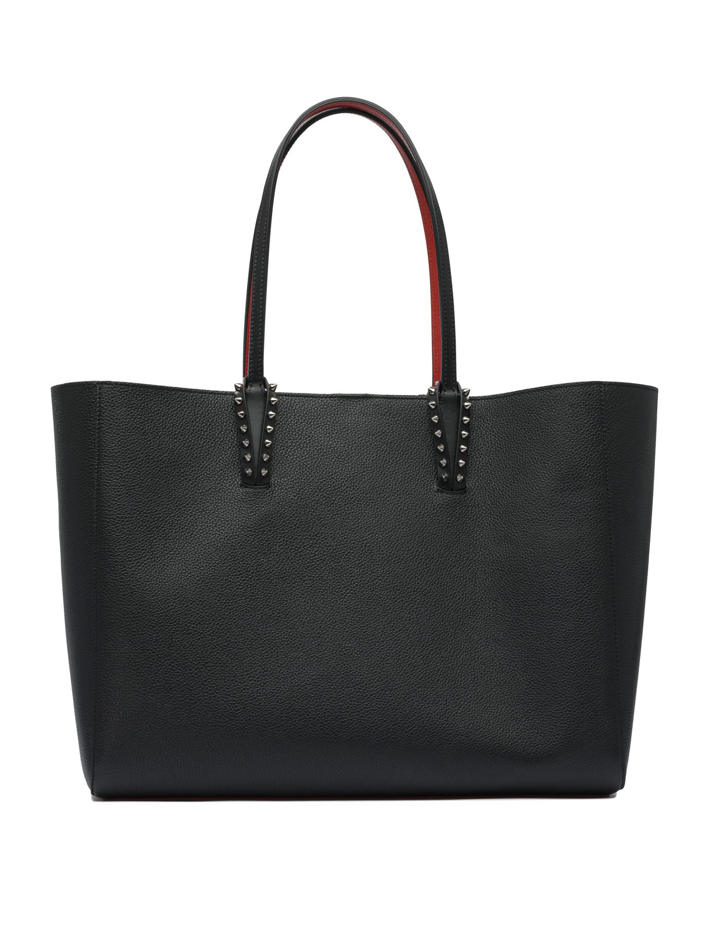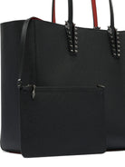 Elevate your everyday style with this sophisticated shoulder bag from Christian Louboutin. Crafted in luxurious black leather, this spacious tote features the designer's signature red interior lining and elegant studded strap details.