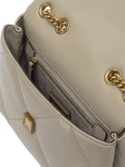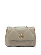 Elevate your everyday style with this exquisite quilted shoulder bag from Tory Burch. Crafted in a sophisticated neutral tone, this luxurious piece features the brand's signature diamond quilting and iconic gold-tone logo hardware that adds a touch of refined elegance.