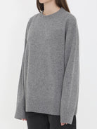 GRAY MéLANGE WOOL AND CASHMERE SWEATER. FEATURES ALL-OVER KNIT CONSTRUCTION, CREW NECK, LONG SLEEVES, TYPICAL BRAND STITCHING ALONG THE BACK, AND RIBBED TRIMS ON THE COLLAR, CUFFS, AND HEM. RELAXED SILHOUETTE. REGULAR FIT.