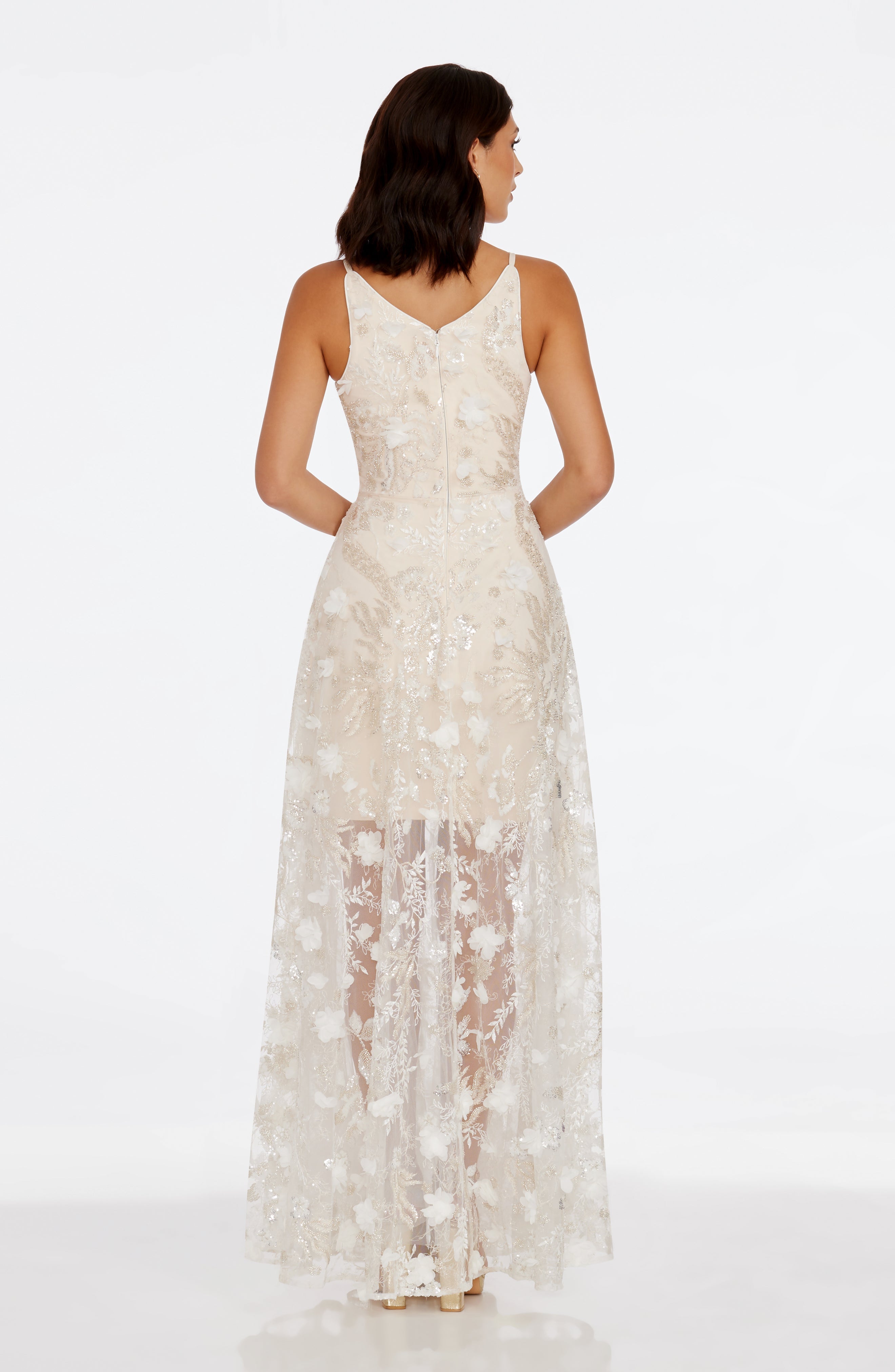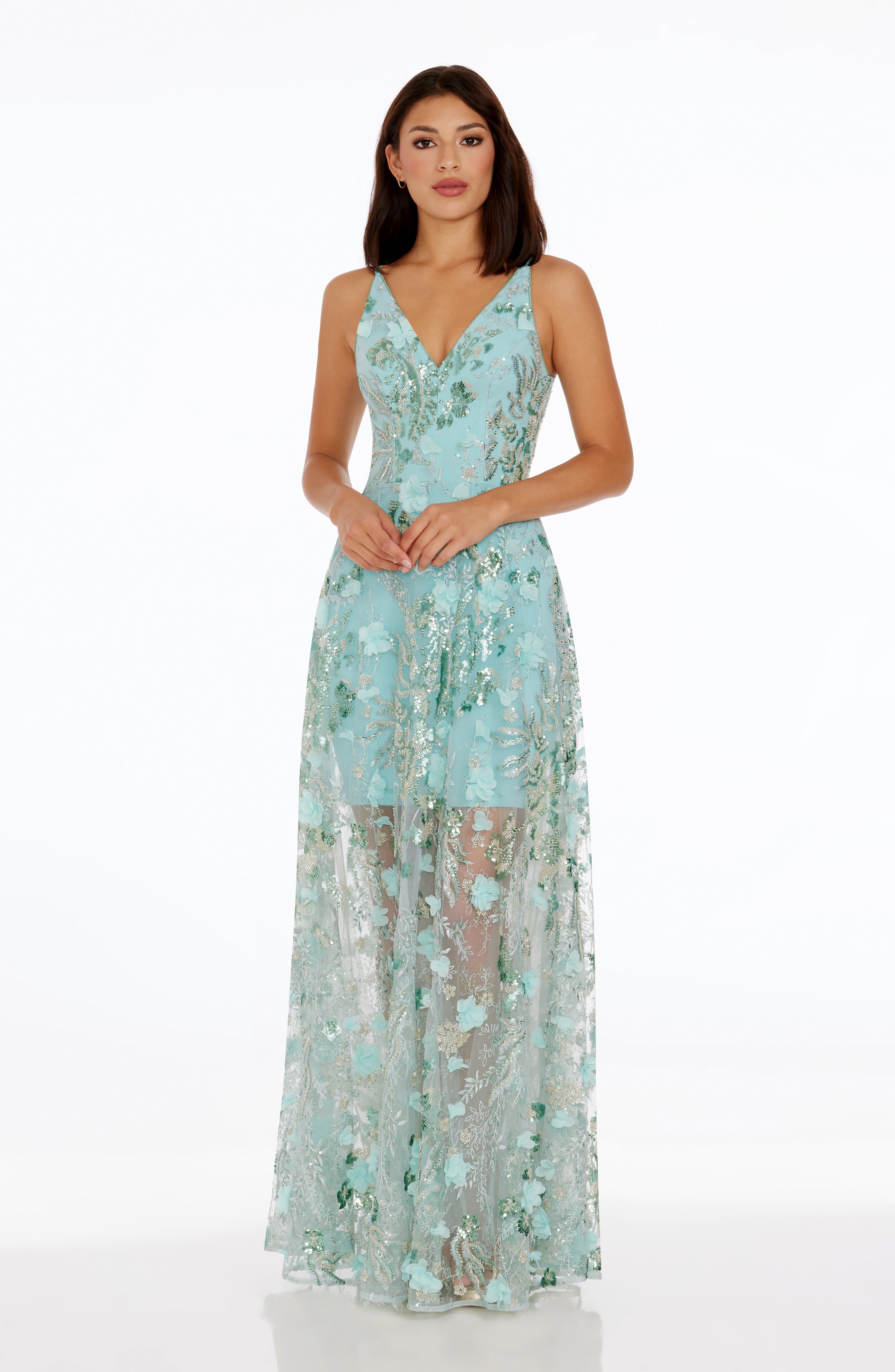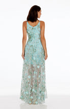 The Sidney Dress features a sleeveless design, a V-neckline, and a flattering fit and flare silhouette, making it a perfect choice for any formal occasion.