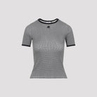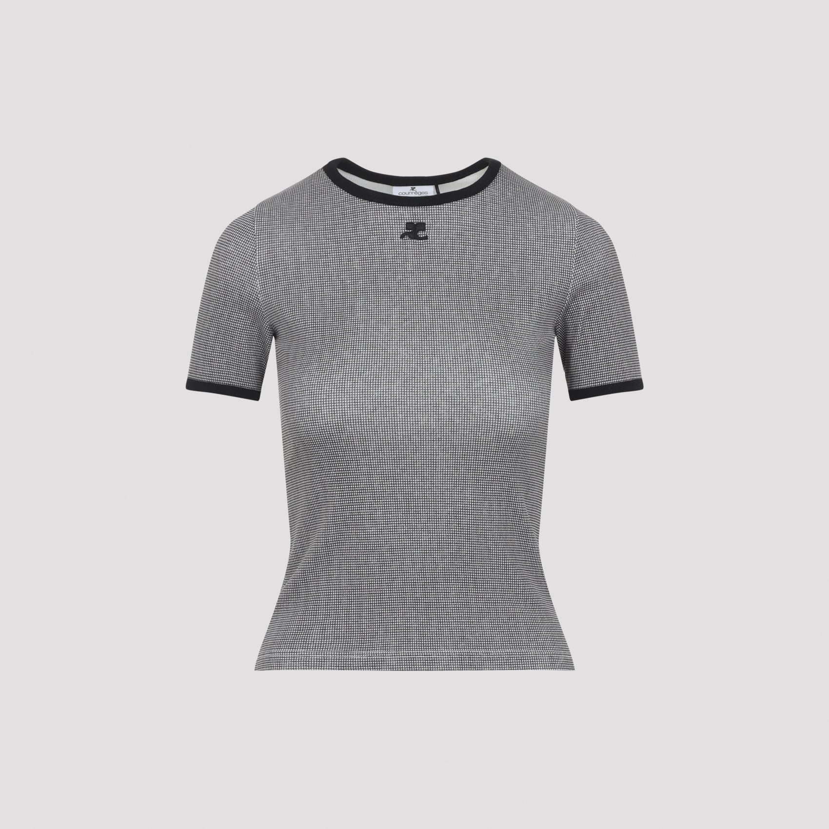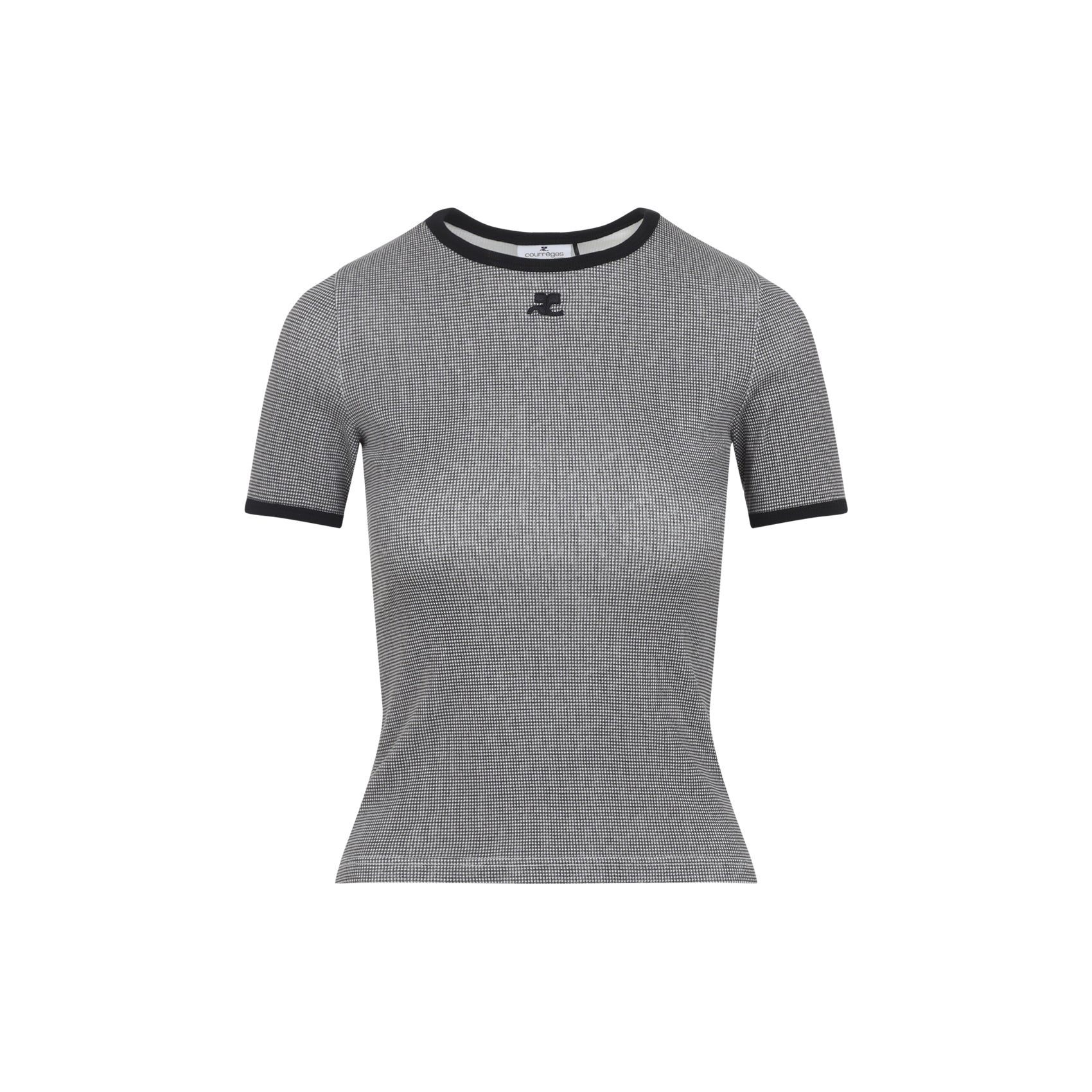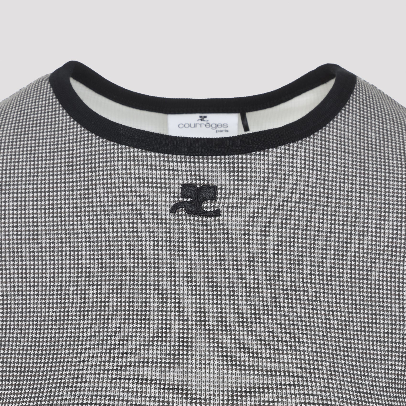 Elevate your everyday wardrobe with the Signature Contrast T-Shirt from Courrèges. This chic cropped tee features a sophisticated houndstooth contrast trim at the neckline and sleeves, adding a refined touch to a classic silhouette.