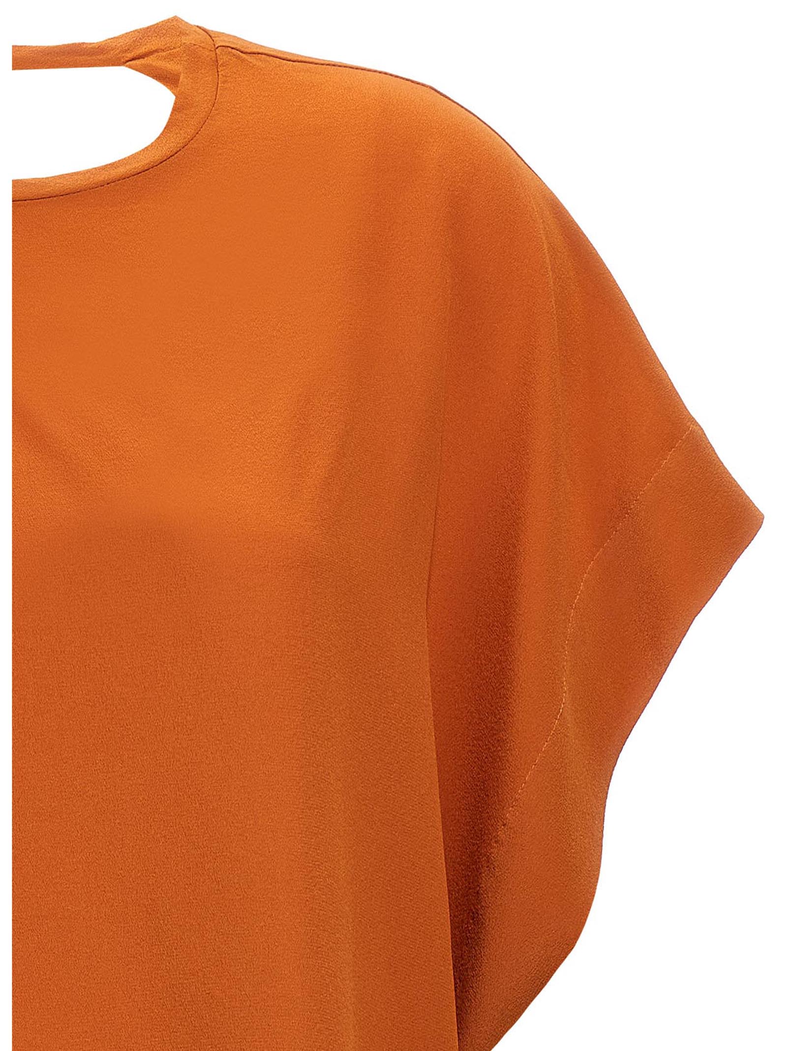 Elevate your everyday wardrobe with this luxurious silk blouse from NUDE. Featuring a classic crewneck silhouette with an unexpected twist, this piece showcases elegant back cutouts that add a touch of modern sophistication.