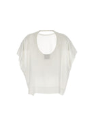 Elevate your wardrobe with this luxurious silk blouse from NUDE. Featuring a classic crewneck silhouette with an unexpected twist, this piece showcases elegant back cutouts that add a touch of allure to your look.