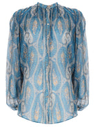 Elevate your wardrobe with this exquisite silk shirt from Etro, crafted from 100% luxurious Italian silk. The stunning blue paisley pattern showcases Etro's signature bohemian elegance, while the gathered neckline and flowing silhouette create a sophisticated yet effortless look.