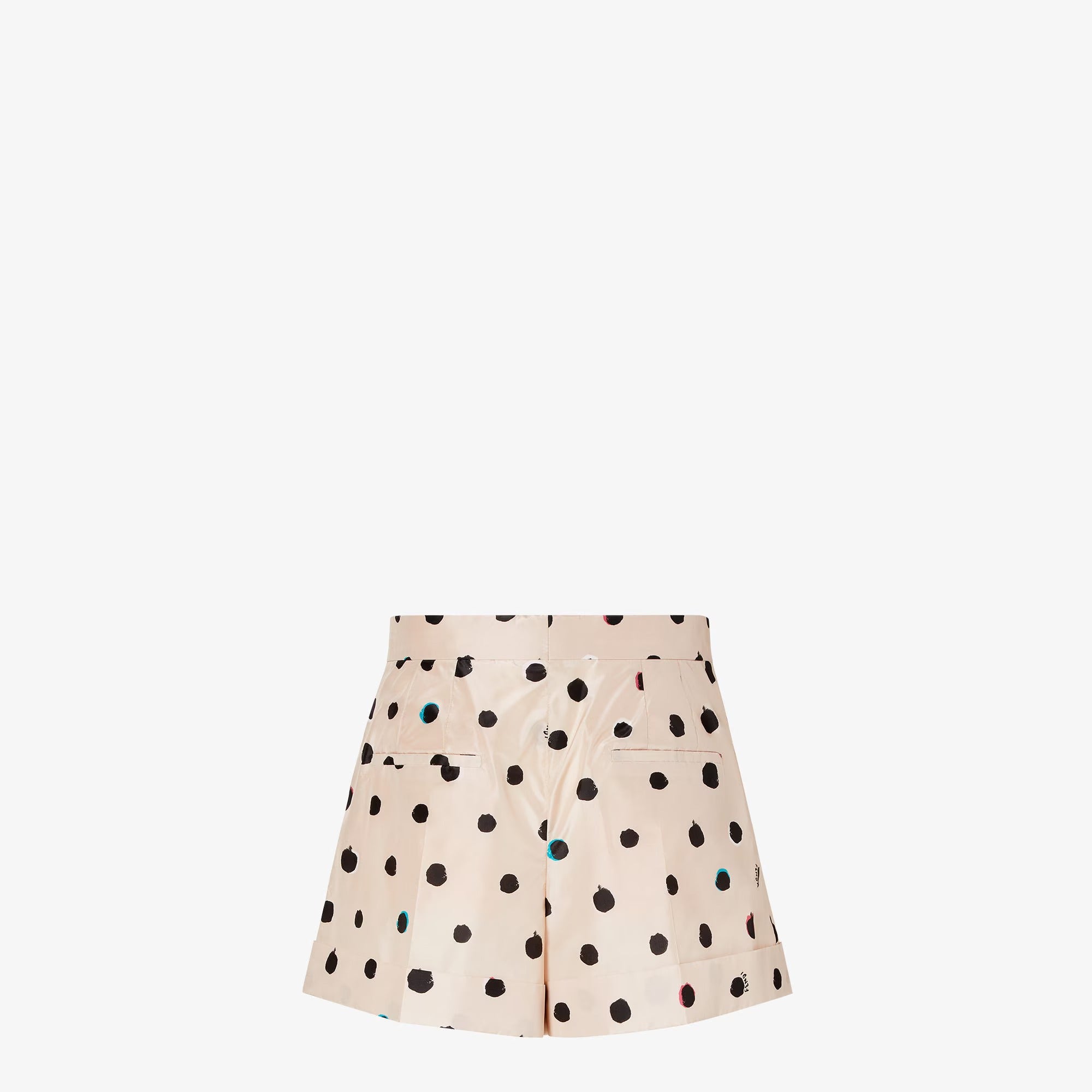 Elevate your warm-weather wardrobe with these luxurious silk shorts from Fendi. Crafted from premium silk, these shorts feature a playful polka dot pattern in a sophisticated neutral palette that exudes effortless elegance.