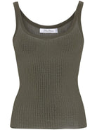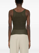 OLIVE GREEN SILK FINE RIBBED SCOOP NECK SLEEVELESS STRAIGHT HEM