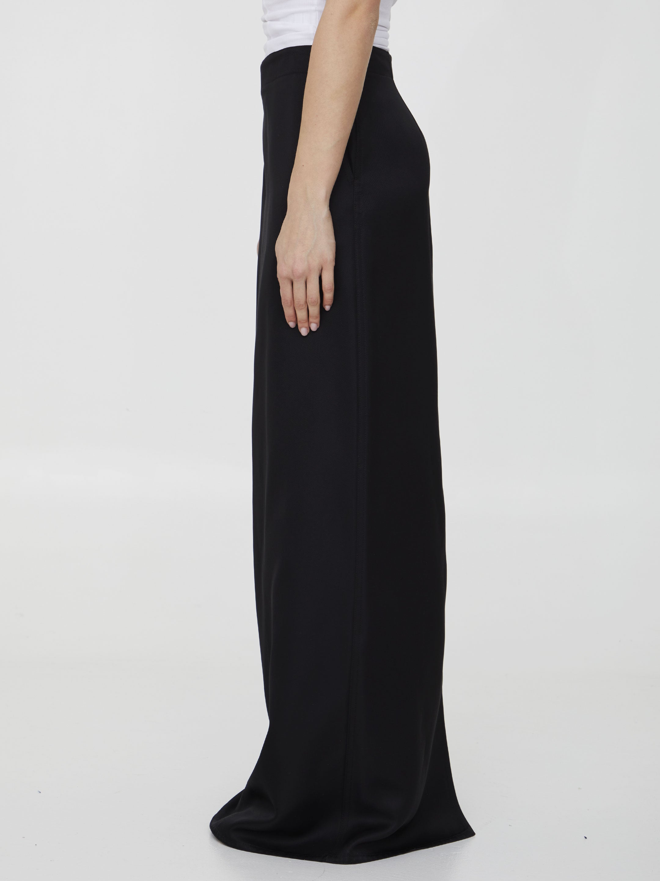 Long skirt in black silk twill. Two side welt pockets, rear zip closure and back vent.