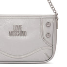 Elevate your evening ensemble with this stunning silver bag from Love Moschino. Crafted with a luxurious metallic finish and adorned with signature branding and decorative stud details, this sophisticated crossbody effortlessly transitions from cocktail hour to a night on the town.