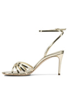 Elevate your evening wardrobe with these stunning silver leather sandals from Casadei. Crafted in luxurious metallic leather, these sophisticated heeled sandals feature delicate strappy detailing across the toe and an elegant ankle strap with buckle closure for a secure fit. The mid-height heel provides the perfect balance of comfort and glamour, making them ideal for cocktail parties, wedding celebrations, or any special occasion.