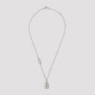 BALENCIAGA NANO THIN SILVER BRASS NECKLACE. CRAFTED FROM SILVER-TONED BRASS, BB CHARM EMBELLISHED WITH CRYSTALS, CLASSIC CHAIN WITH ENGRAVED PLAQUE, LOBSTER CLASP FASTENING, ADJUSTABLE FIT.
