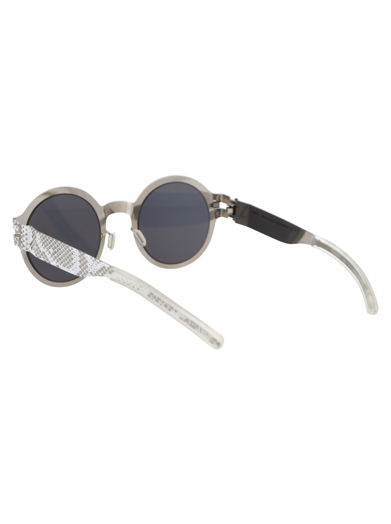 SILVER WHITE PYTHON DARK GREY SOLID METAL SUNGLASSES